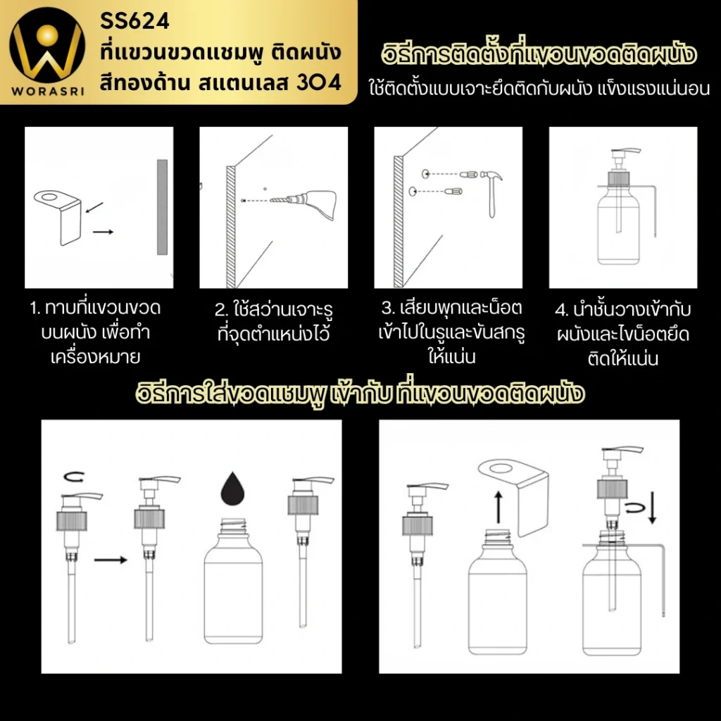 รายละเอียดสินค้า ที่แขวนขวดแชมพูติดผนัง รุ่น SS624, SS625