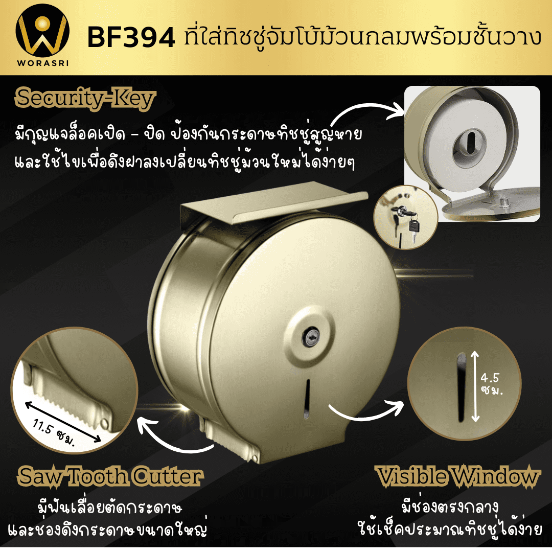 คุณสมบัติเด่น BF394 ใส่ทิชชู่จัมโบ้ม้วนกลม ดียังไง