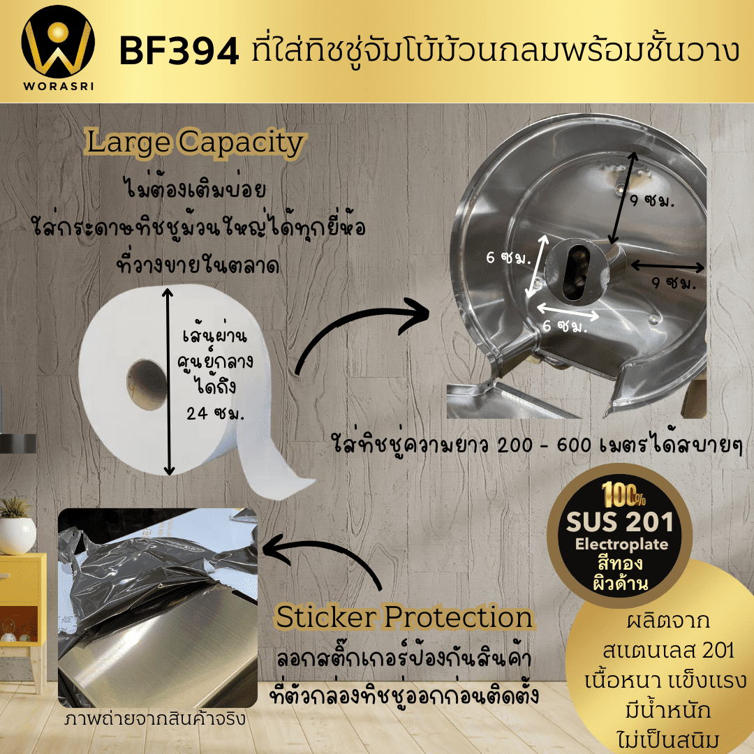 รายละเอียดสินค้า BF394 ใส่ทิชชู่จัมโบ้ม้วนกลม