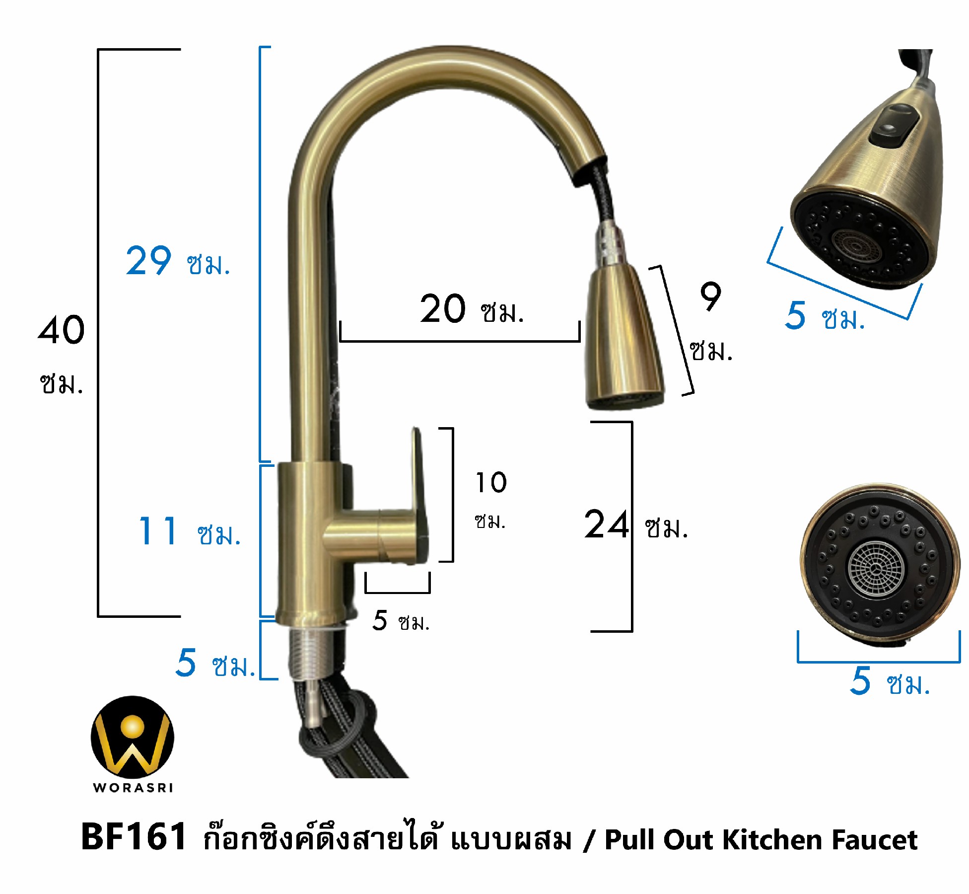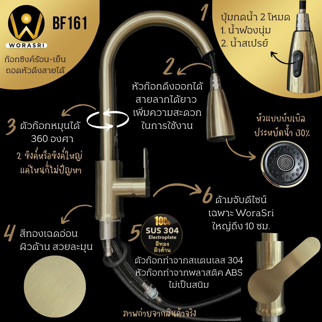 คุณสมบัติเด่น ก๊อกซิงค์ครัวดึงหัวโยกสาย BF161 – BF162 ดียังไง