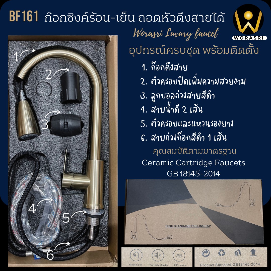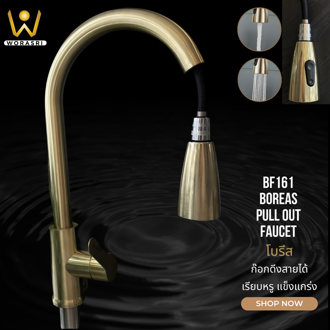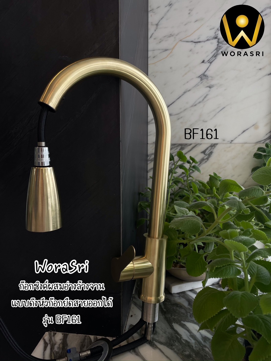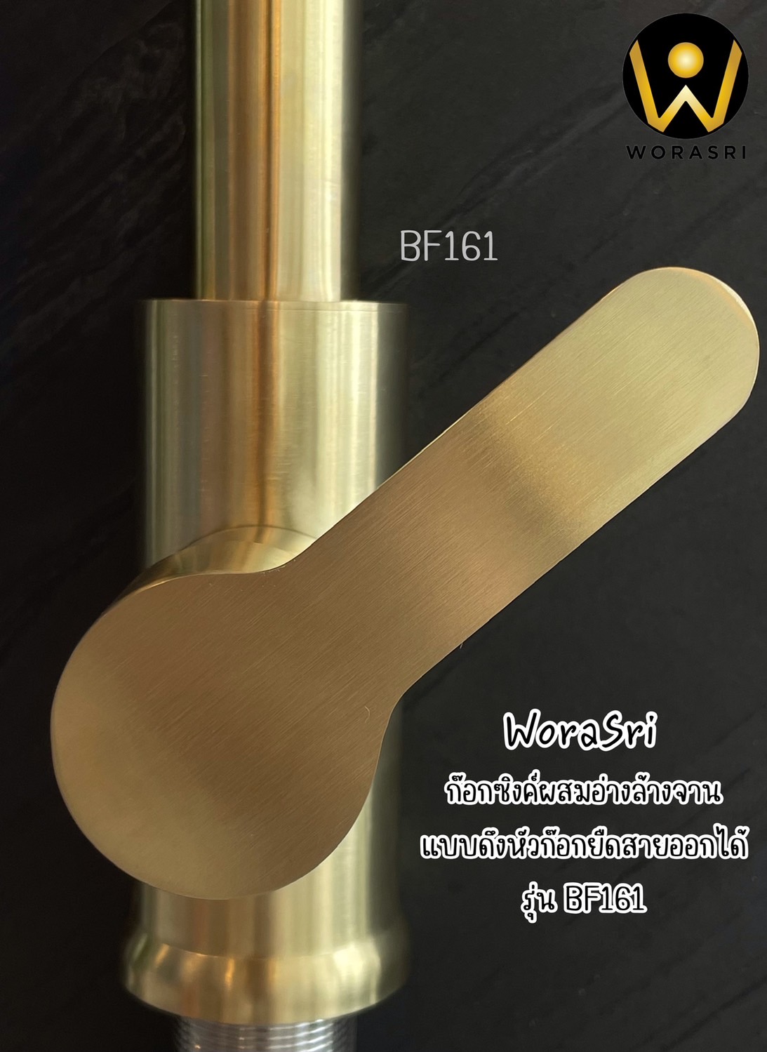 ก๊อกซิงค์ครัวดึงหัวโยกสาย สีทองด้าน BF161 Brushed Gold Pull Out Faucet