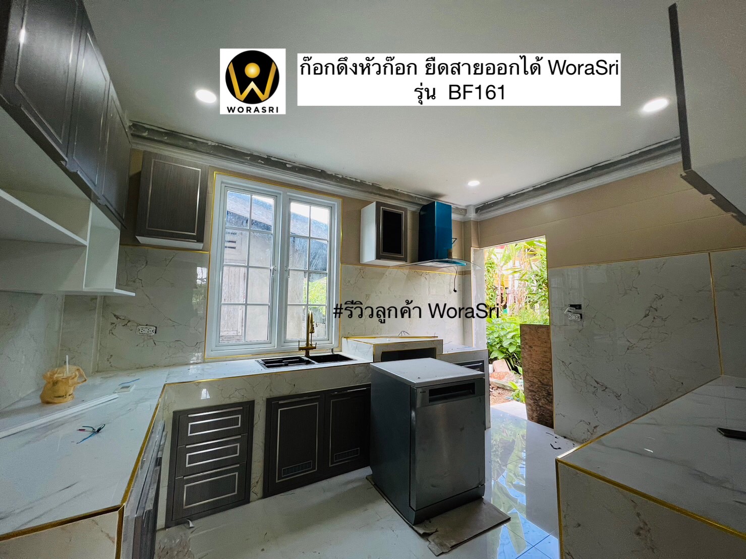 - เป็นก๊อกล้างจาน ที่หัวก๊อกสามารถดึงยืดออกได้และดึงกลับอัตโนมัติ ล้างได้สะดวกขึ้น เวลาล้างหม้อกระทะใบใหญ่ ๆ มันไม่ถนัด แต่เจ้าหัวก๊อกแบบนี้ มันยืดหยุ่นยกสูง ๆ ได้ ตั้งหม้อไว้เฉย ๆ ฉีดซ้ายขวาสะดวกมาก