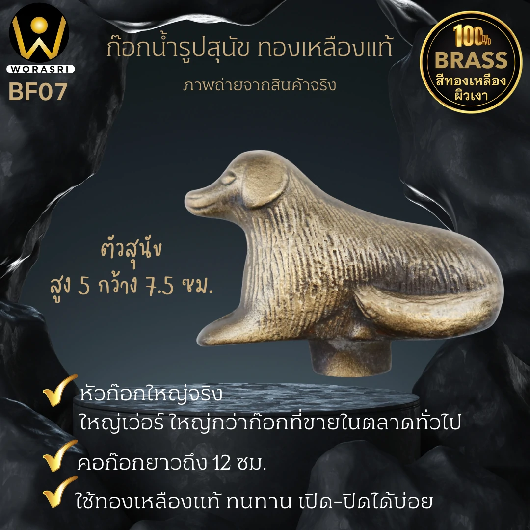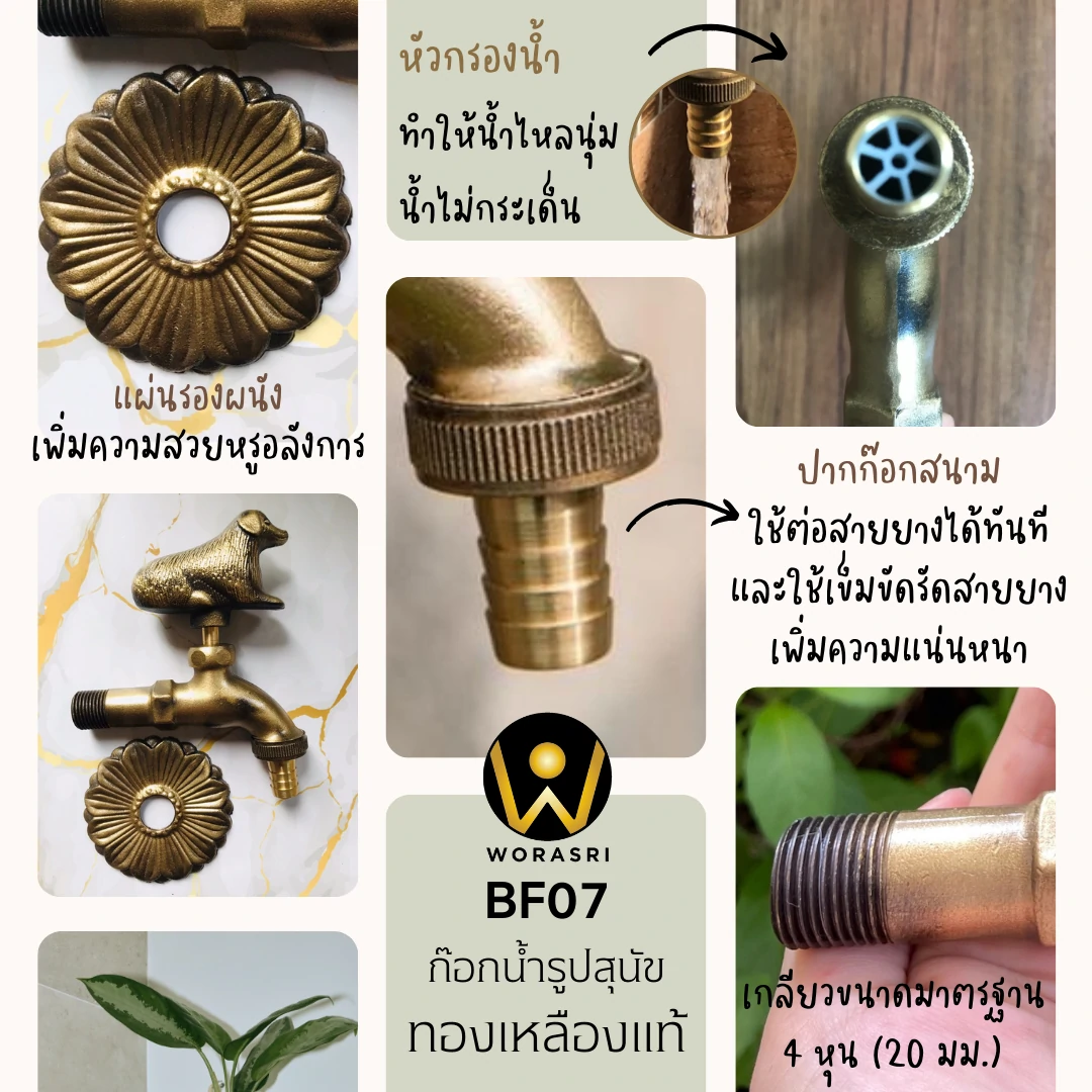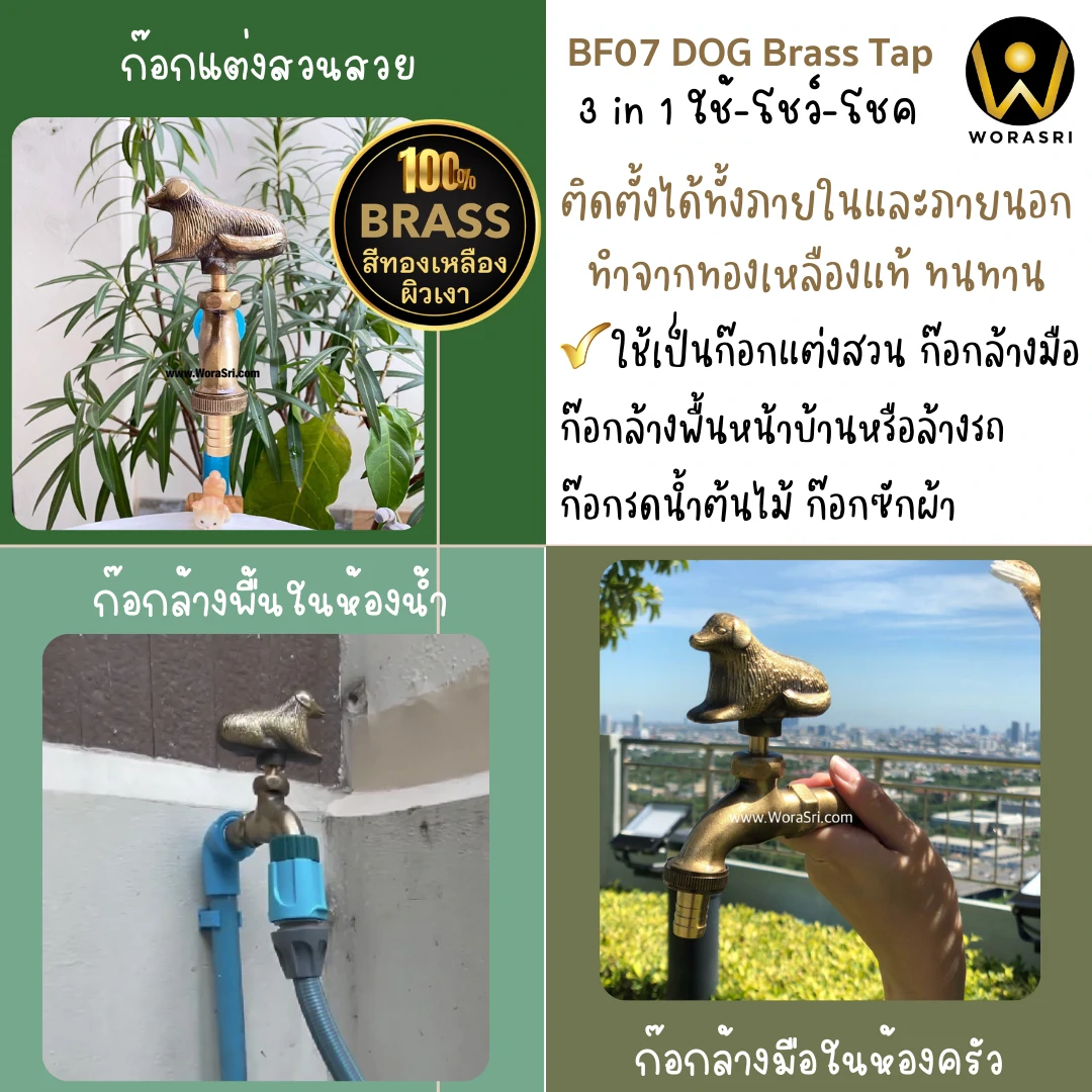 ก๊อกสนามแต่งสวนหมา ก๊อกน้ำรูปปั้นสุนัข (น้องหมา) ตามหลักทางฮวงจุ้ย “สุนัข” หมายถึงบุตร บริวาร หรือความซื่อสัตย์ต่อผู้เป็นนาย ถ้าอยากให้คนเชื่อถือ อยากมีลูก มีบริวารดี ช่วยเสริมโชคลาภความสำเร็จและความเจริญรุ่งเรืองและการได้รับโอกาสที่ดีเสมอๆ ก๊อกน้ำทองเหลืองรูปสุนัข ใช้เป็นก๊อกน้ำได้จริง ก๊อกซิงค์ล้างจาน แถมเป็นรูปปั้นสัตว์มงคลเสริมฮวงจุ้ยให้กับบ้านได้ด้วย เหล่าคนรักสัตว์ น้องหมา น้องแมว มาเปลี่ยนก๊อกน้ำธรรมดาเป็นก๊อกน้ำรูปสัตว์ ใช้ตกแต่งบ้านและสวน เพิ่มบรรยากาศธรรมชาติให้บ้านคุณ งานดี งานละเอียดแบบนี้ คนรักบ้านอย่าพลาดนะคะ