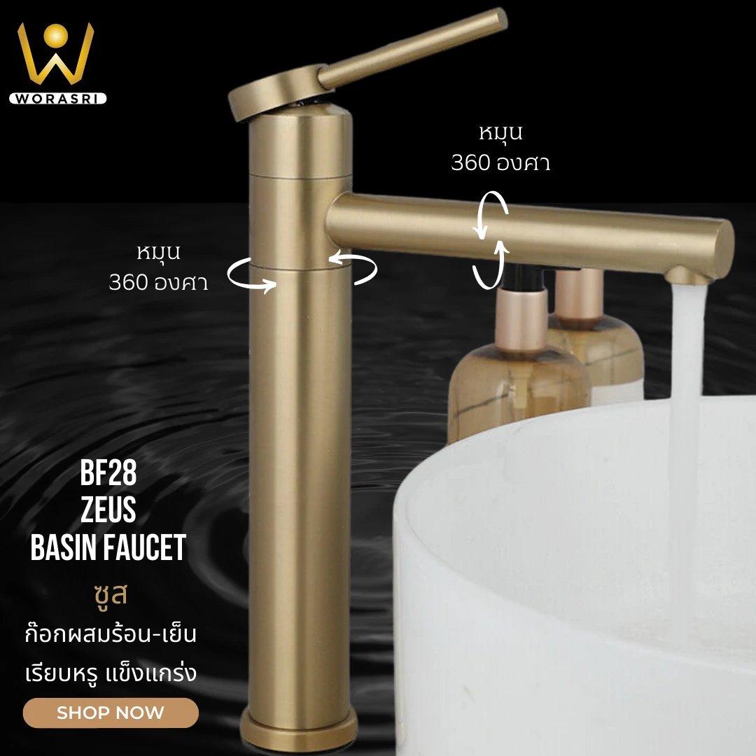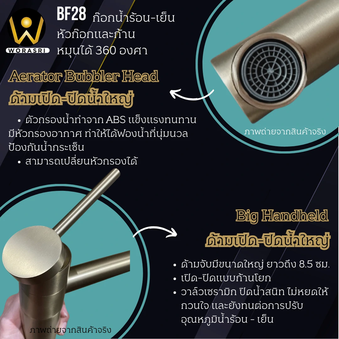 คุณสมบัติเด่น ก๊อกผสมอ่างล้างหน้าแบบก้านโยกหมุนได้ 360 องศา BF28 ดียังไง