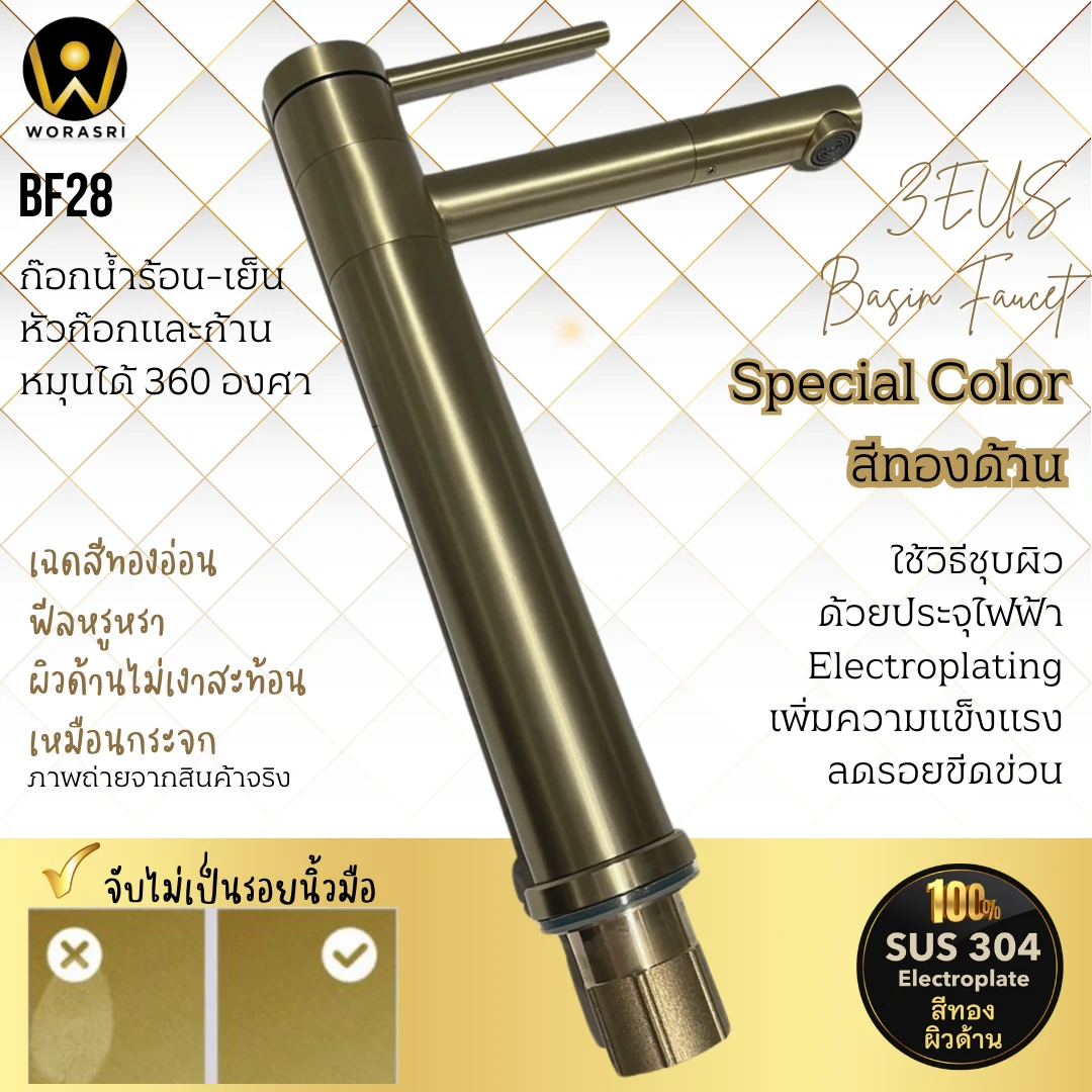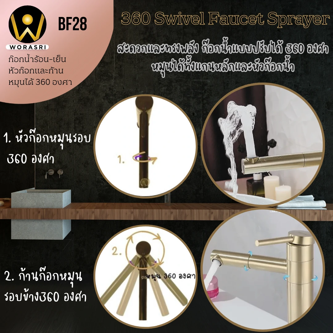 รายละเอียดสินค้า ก๊อกผสมอ่างล้างหน้าแบบก้านโยกหมุนได้ 360 องศา BF28