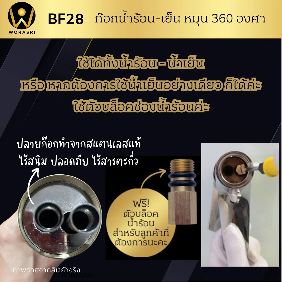- ก้านก๊อกหมุนรอบข้างได้รอบ 360 องศา