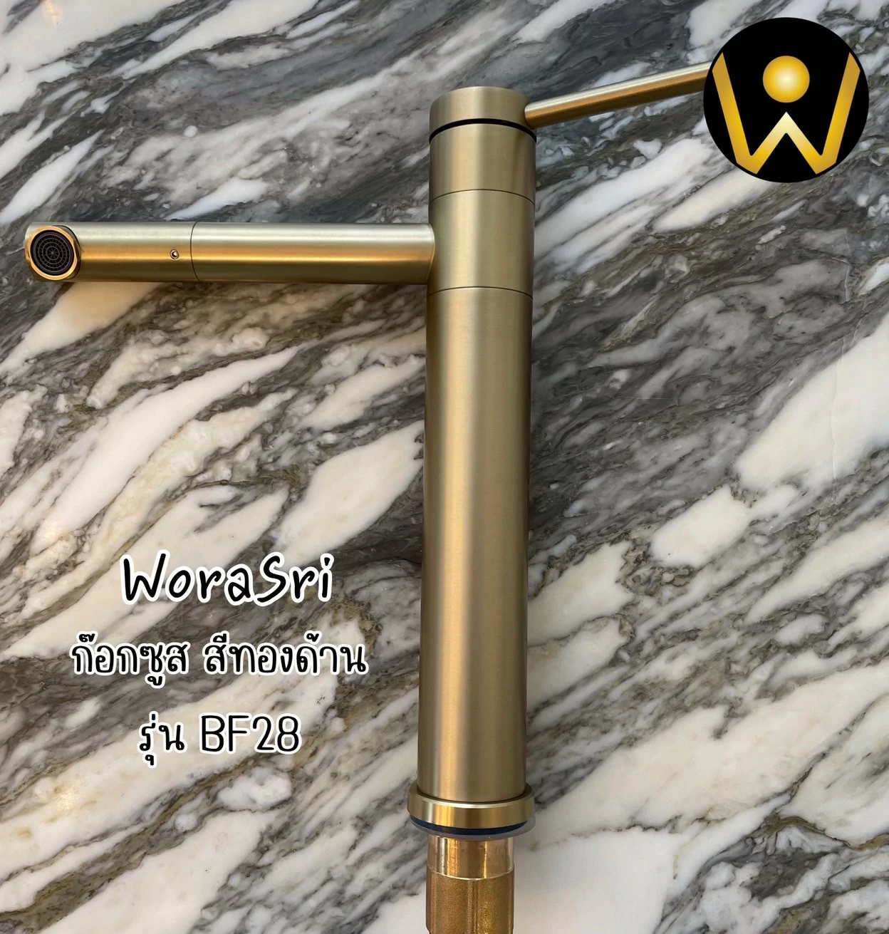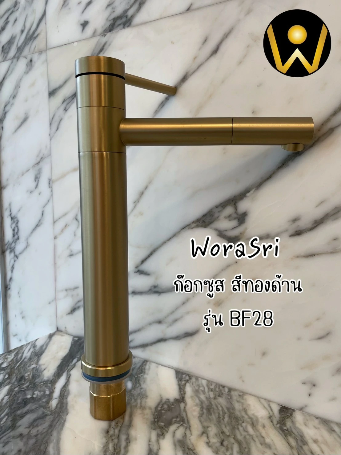 - ก๊อกผสมอ่างล้างหน้า สีทองด้าน แข็งแรงใช้งานได้ยาวนาน อุปกรณ์ติดตั้งง่าย ก๊อกทรงสูง ล้างอะไรก็สะดวก