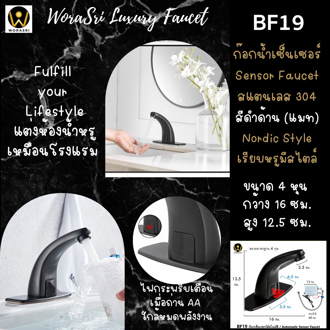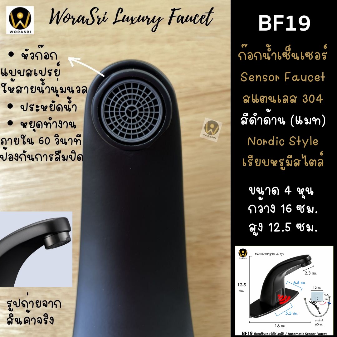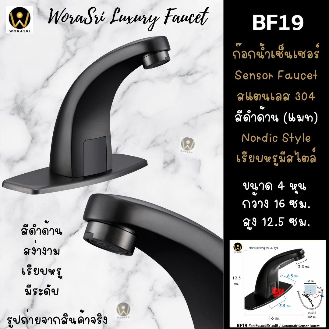 ก๊อกน้ำเซ็นเซอร์สีดำ BF19 Black Sensor Faucet