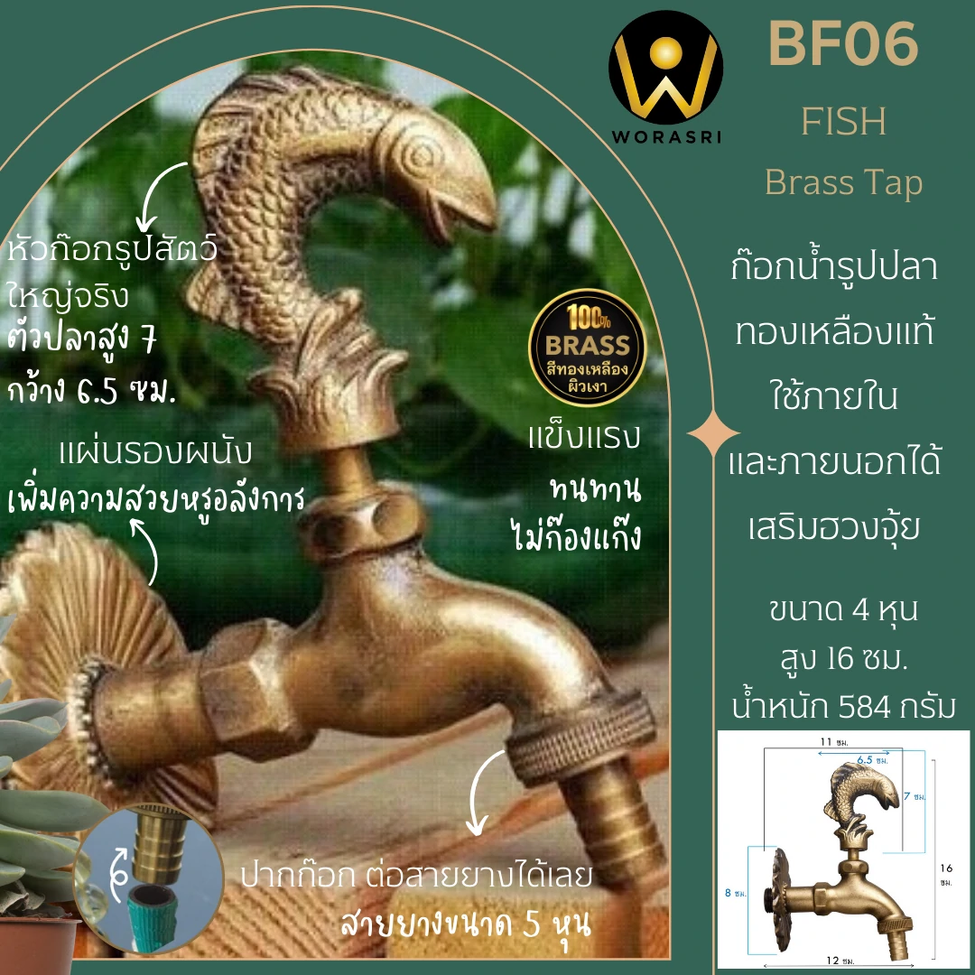 ก๊อกสนามเสริมดวงปลาสีทอง BF06 Fish Brass Tap