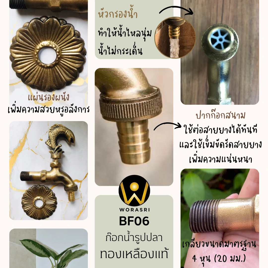 ก๊อกน้ำล้างพื้นติดผนังทองเหลืองจัดสวนตกแต่งสนามนักษัตร #ปลาหลีฮื้อ