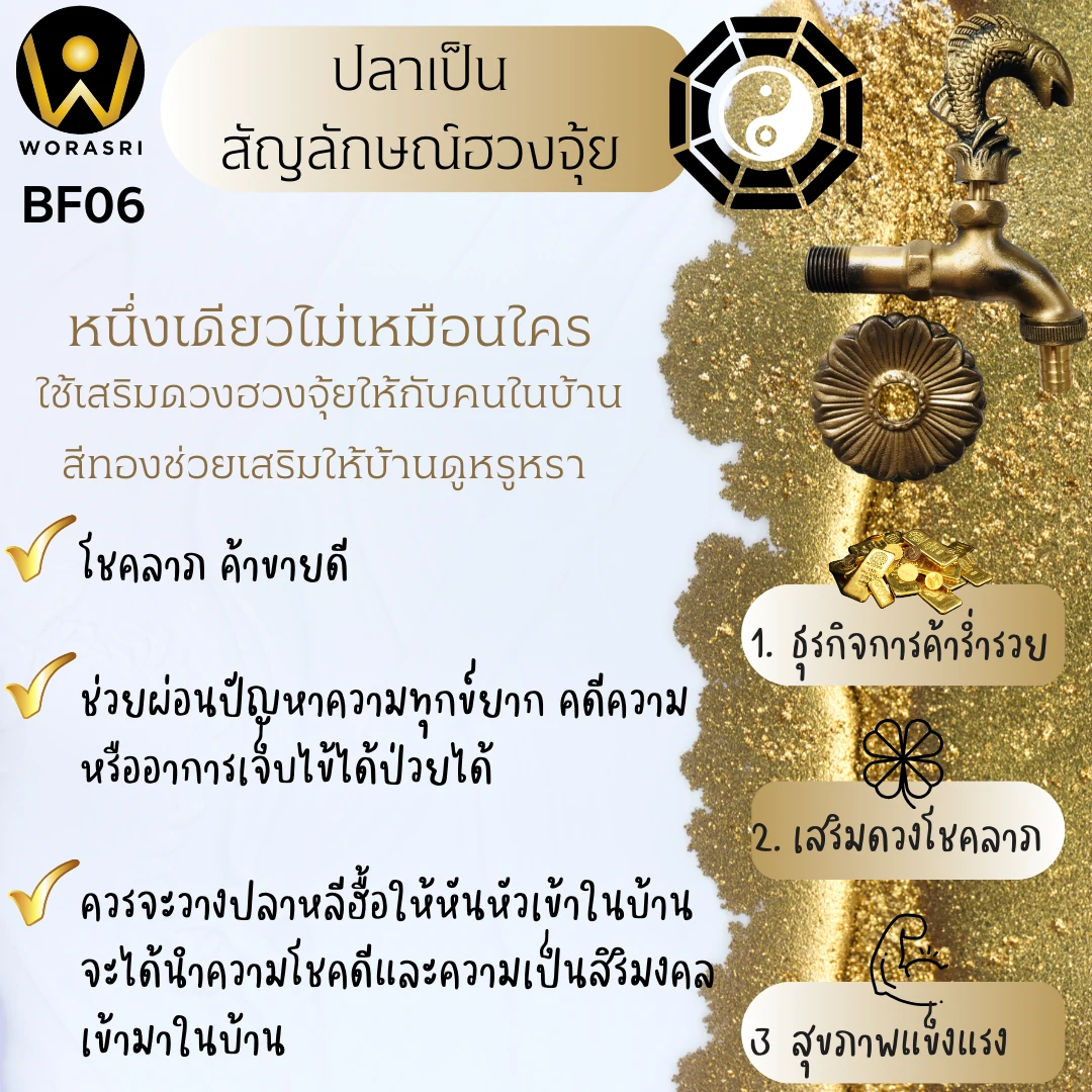 - Feng Shui essentials for your Home: 1 เดียวไม่เหมือนใคร ก๊อกน้ำทองเหลืองรูปสัตว์ใช้เสริมดวงฮวงจุ้ยให้กับคนในบ้าน ไม่ว่าจะเป็นเรื่องความรัก อำนาจ หน้าที่การงาน หรือแคล้วคลาดจากอันตราย แถมยังเป็นของตกแต่งบ้านให้สวยงามน่าอยู่อาศัยอีกด้วย