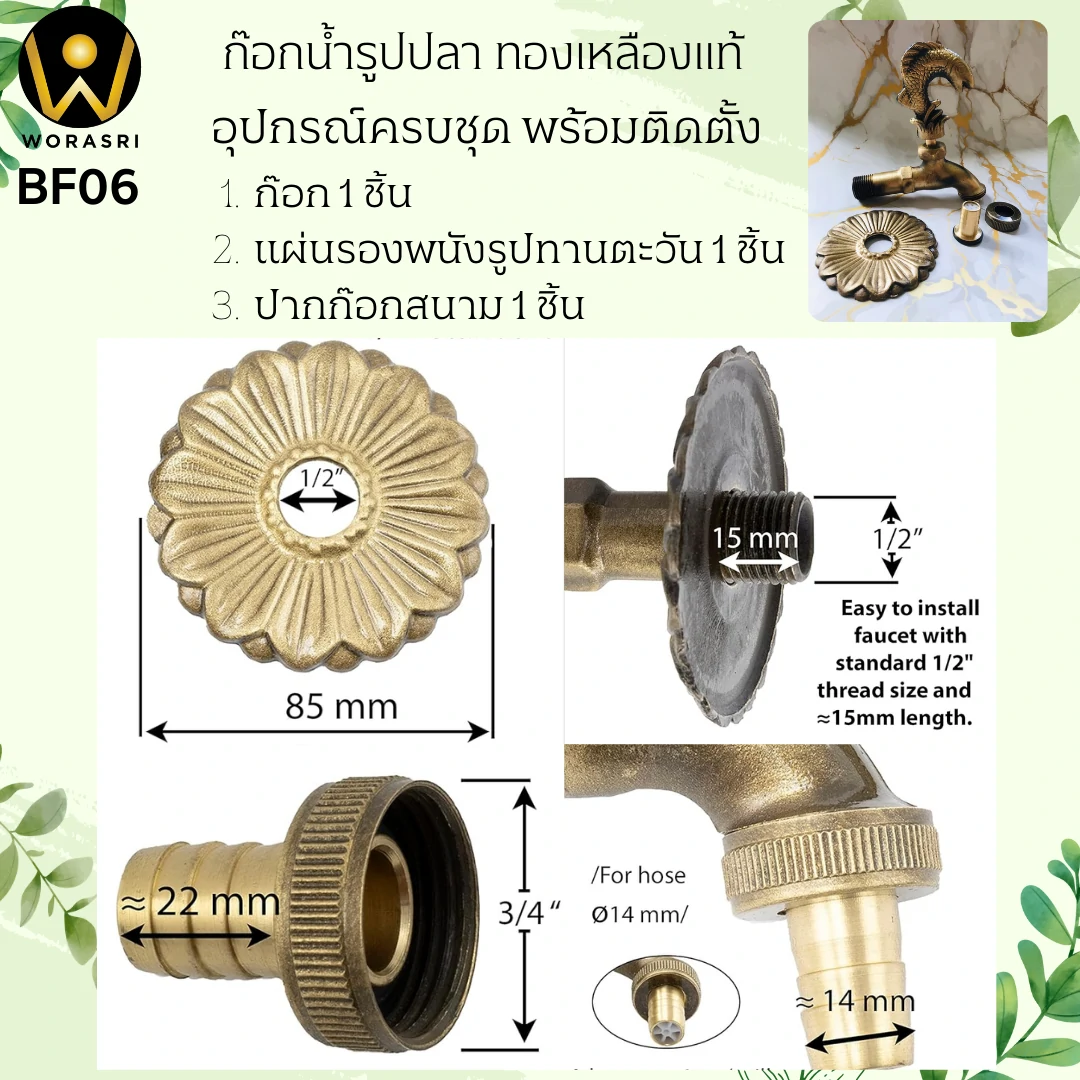 - ผลิตจากทองเหลืองคุณภาพสูง 100% มาตรฐาน Cu57-3 ไม่เป็นสนิม ไร้สารตะกั่ว