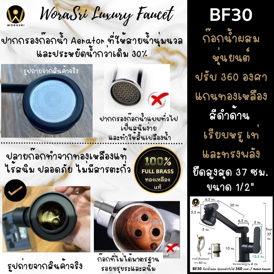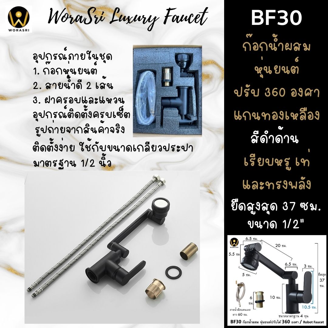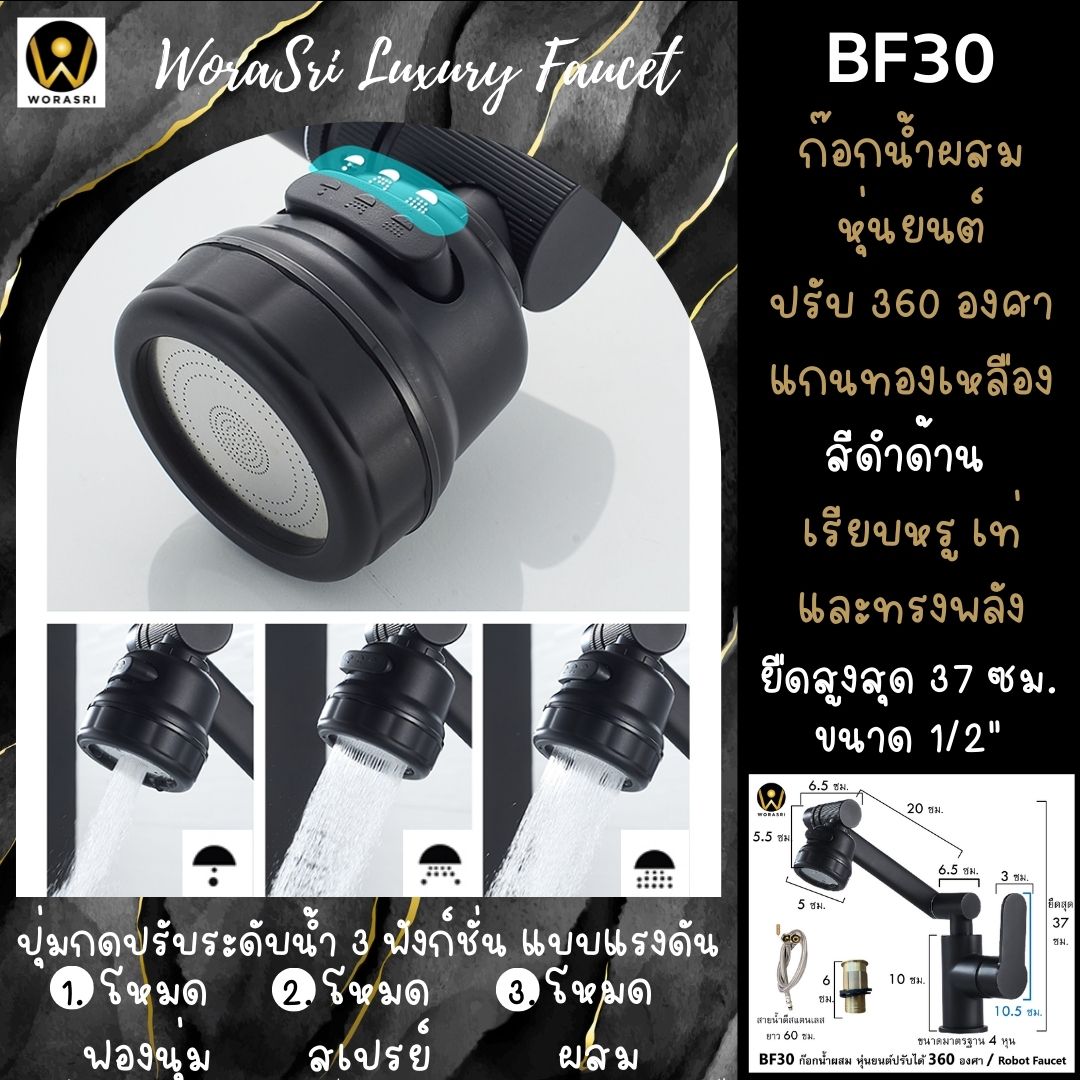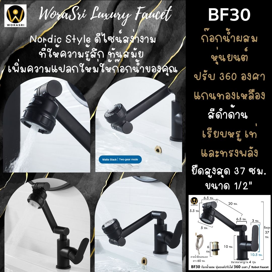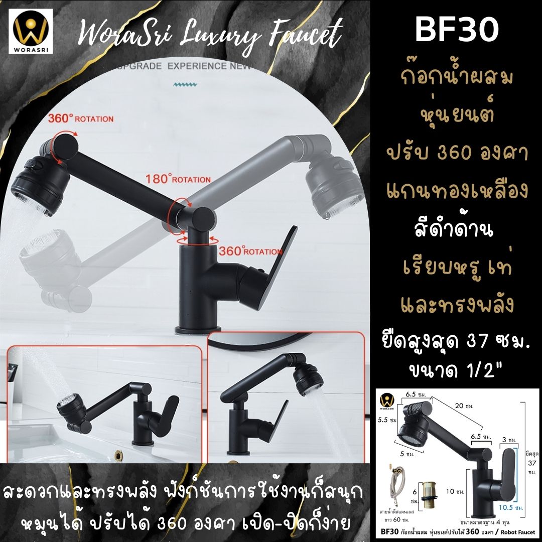 BF30 ก๊อกผสมหมุน360องศาสีดำ หุ่นยนต์ ผสมร้อน-เย็น ปรับได้ 360 องศา สีดำ (Robot 360 Swivel Basin Faucet)