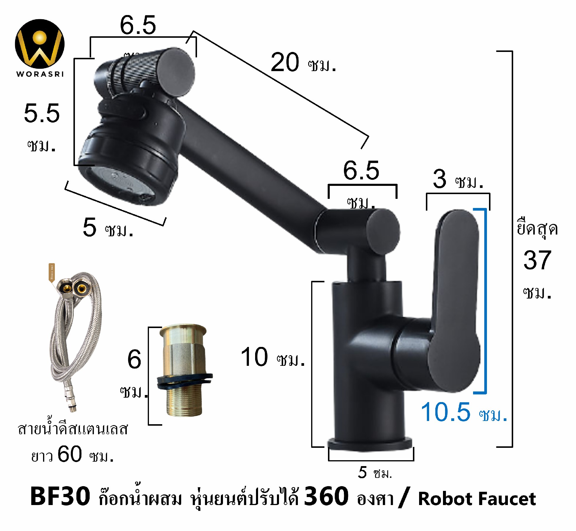 - ก๊อกยืดได้สูงสุดถึง 37 ซม.