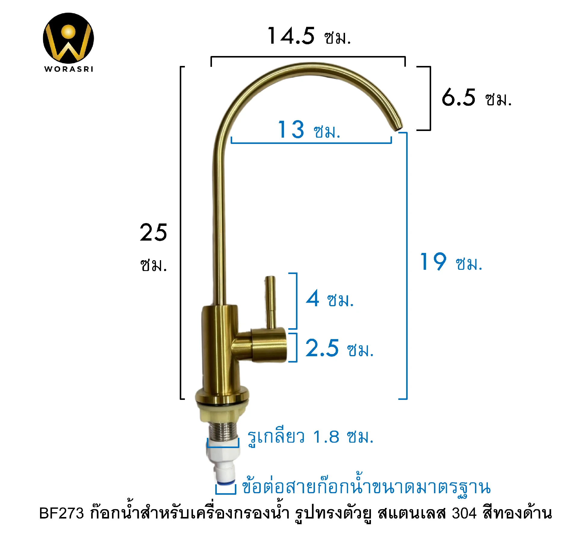 BF273 ก๊อกเครื่องกรองน้ำดื่มคอตัวยู น้ำเย็น สแตนเลส 304 สีทองด้าน คอตัวยู U (Water Filter Faucet)