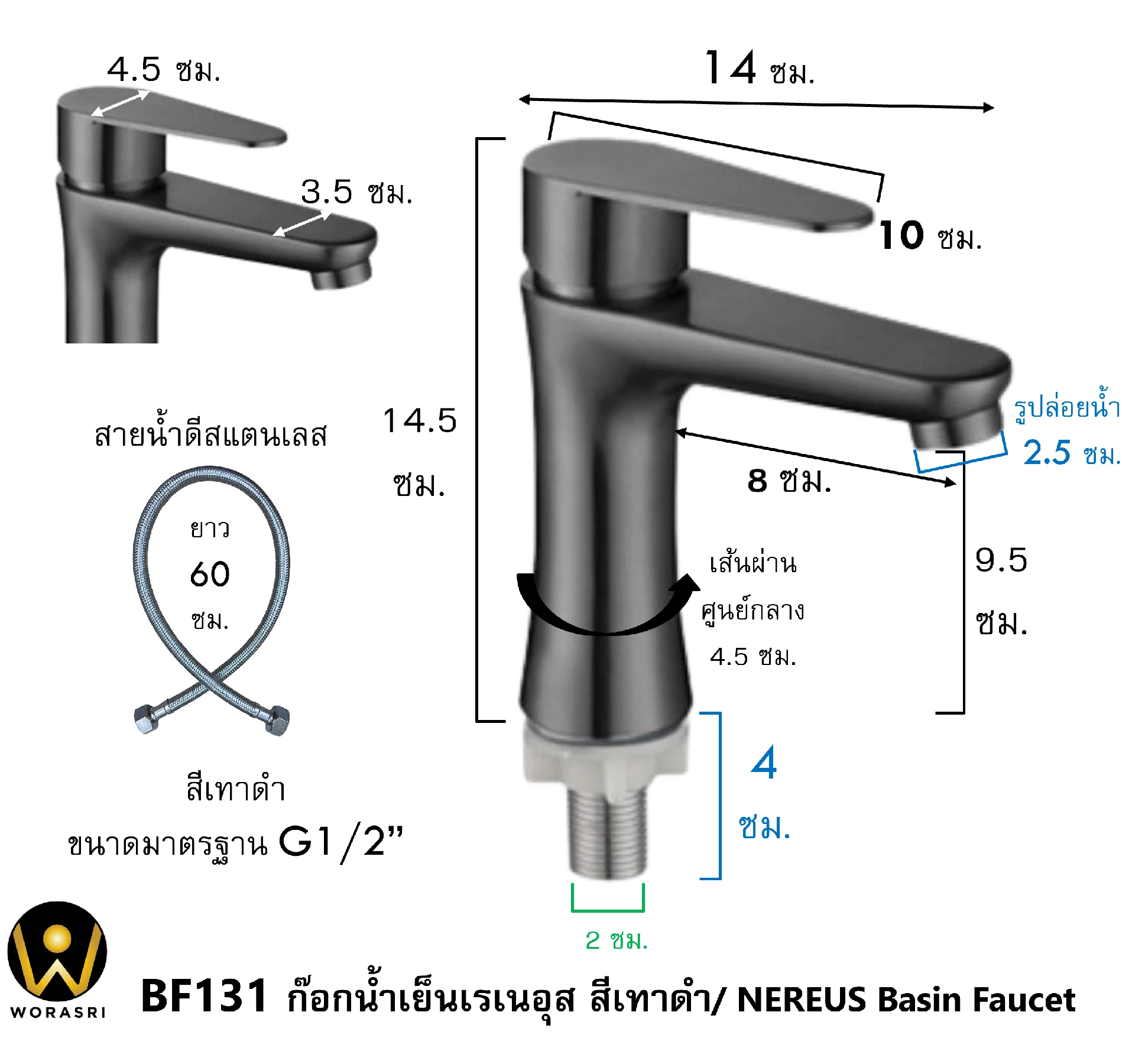 Product description ก๊อกเดี่ยวอ่างล้างหน้าน้ำเย็นทรงเตี้ยสีเทาดำ