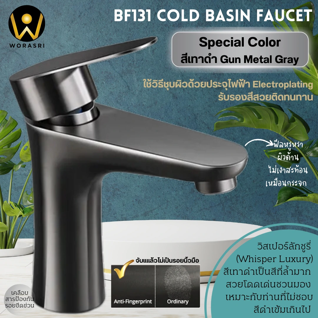 ก๊อกเดี่ยวอ่างล้างหน้าน้ำเย็นทรงเตี้ยสีเทาดำ BF131Gun Gray Basin Faucet