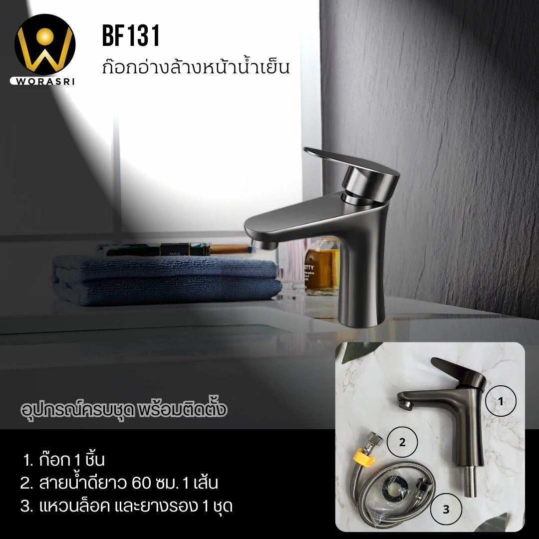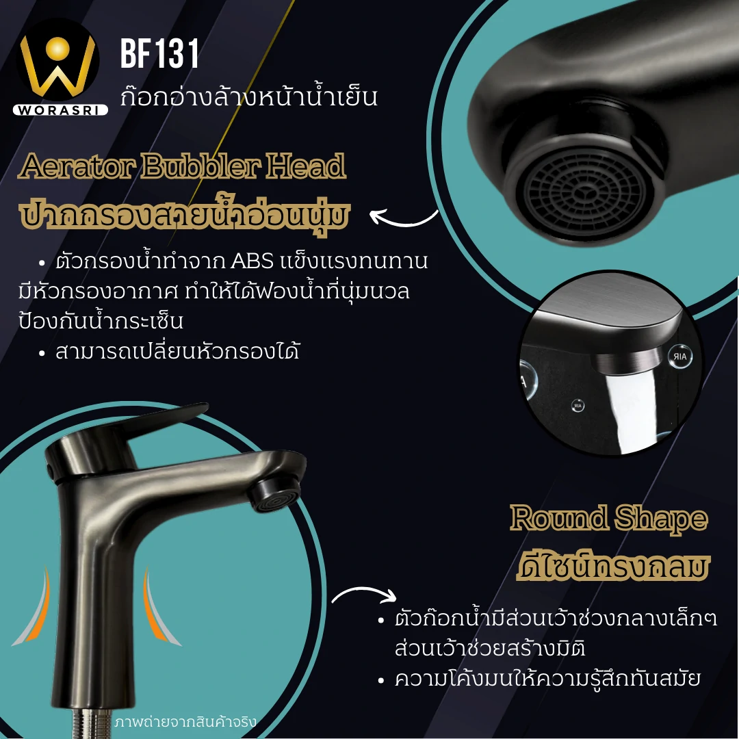 คุณสมบัติเด่น ก๊อกเดี่ยวอ่างล้างหน้าน้ำเย็นทรงเตี้ยสีเทาดำ BF13 ดียังไง