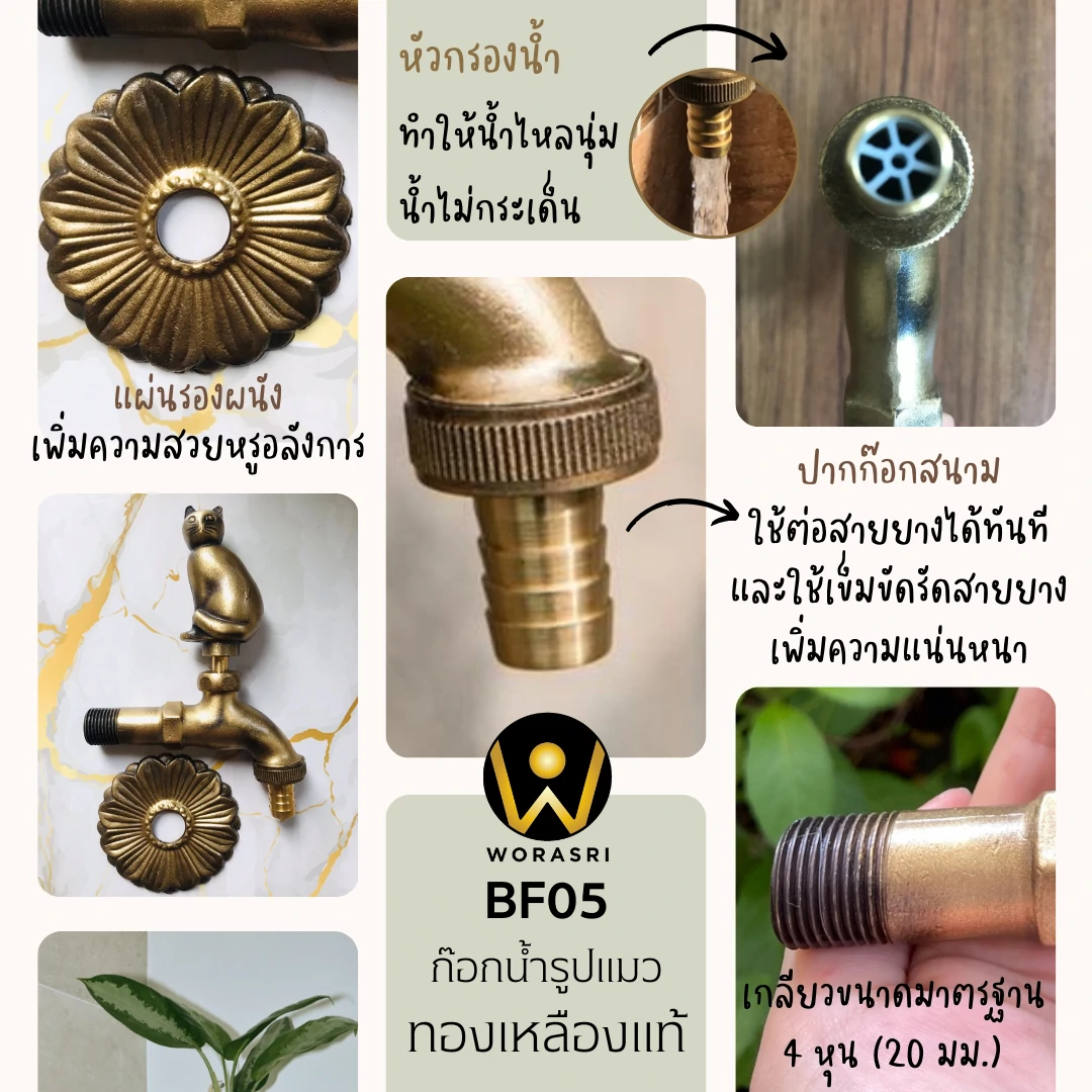 ก๊อกน้ำล้างพื้นติดผนังทองเหลืองจัดสวนตกแต่งสนามนักษัตร #แมว