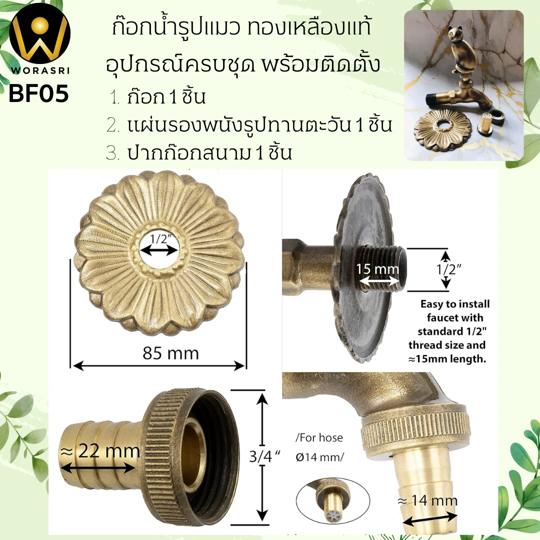 - ผลิตจากทองเหลืองคุณภาพสูง 100% มาตรฐาน Cu57-3 ไม่เป็นสนิม ไร้สารตะกั่ว