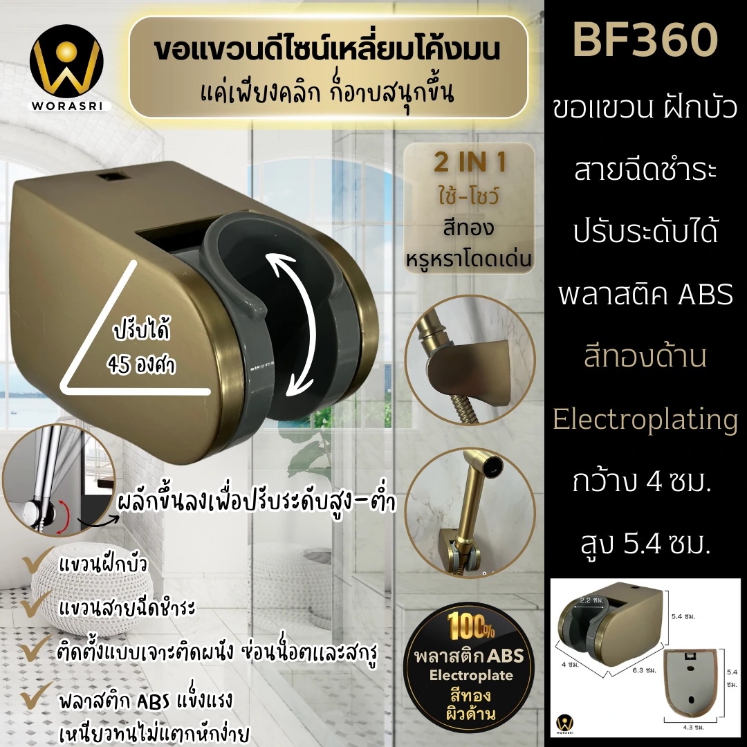 ขอแขวนฝักบัวสายฉีดชำระสายอ่อนปรับระดับสีทองด้าน BF360 ABS Shower Holder Hook