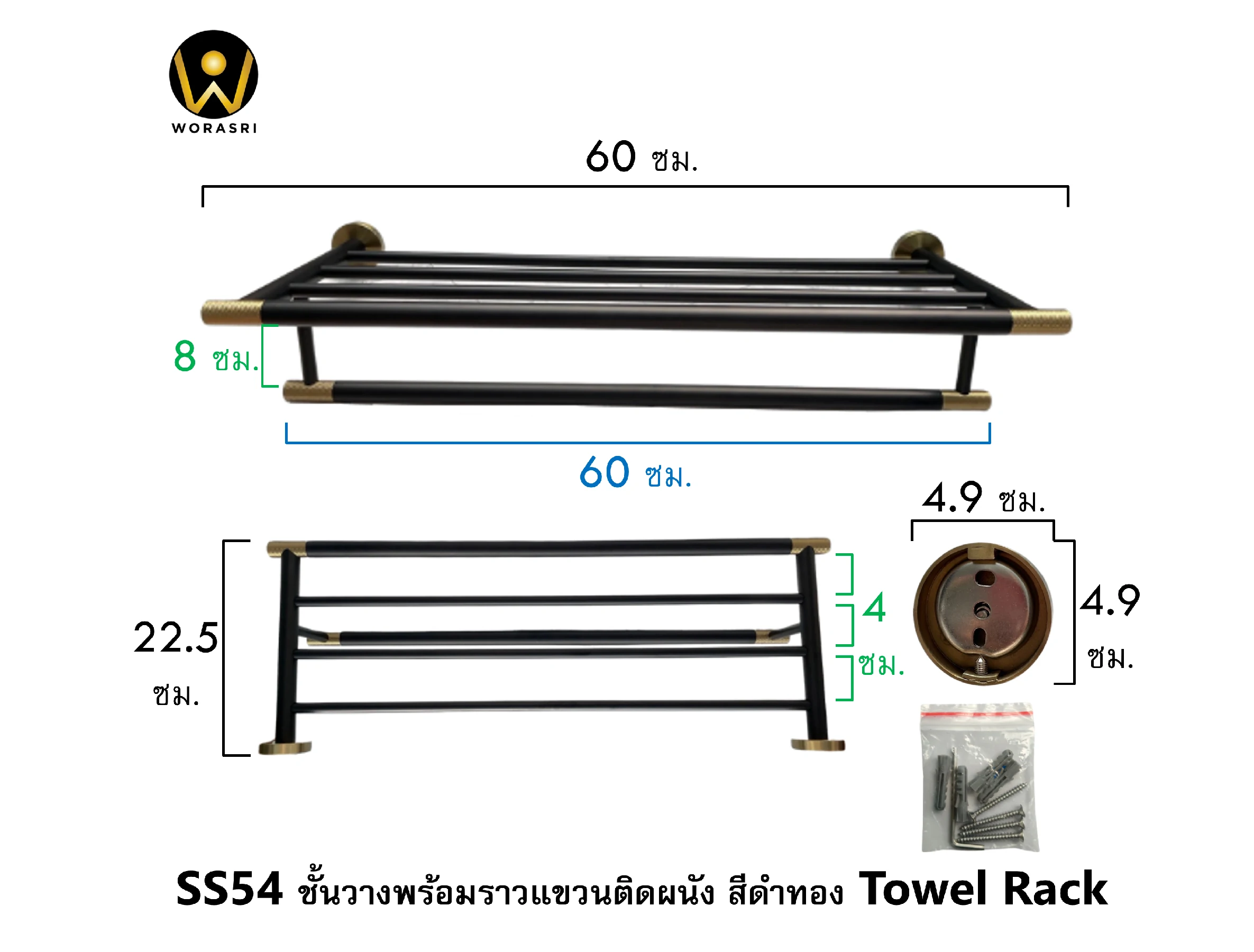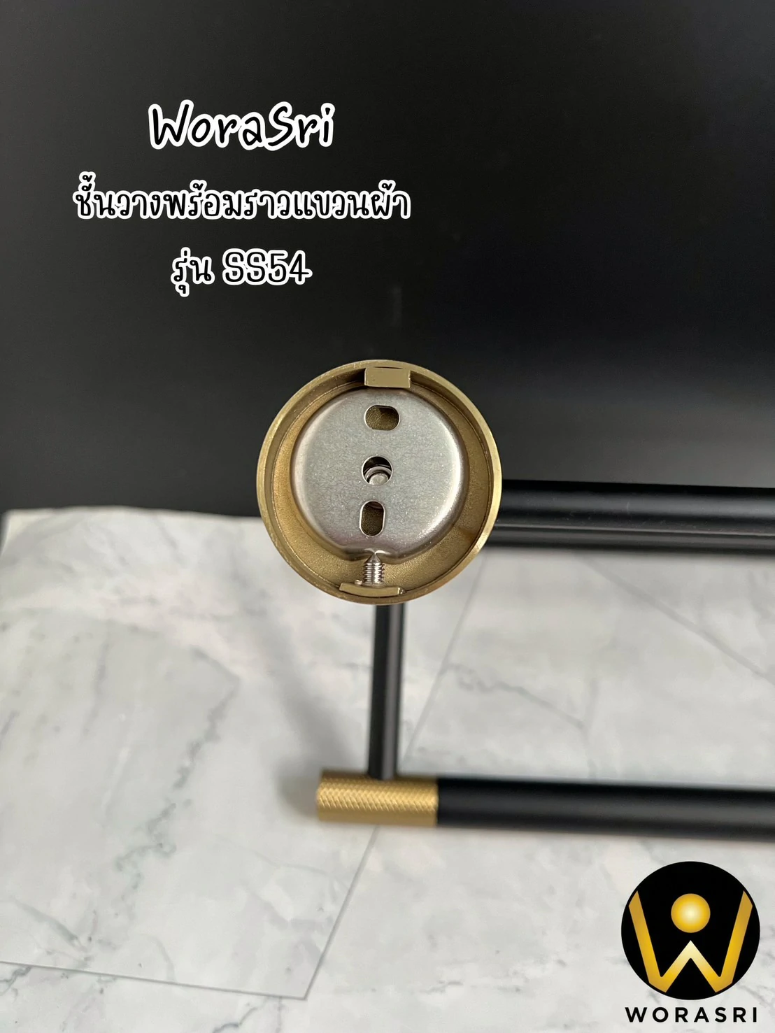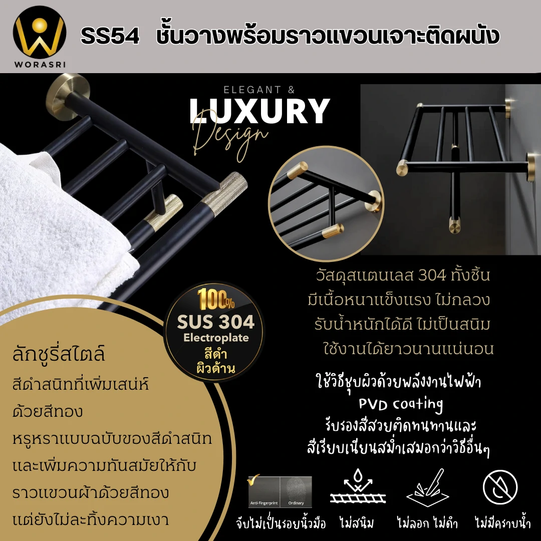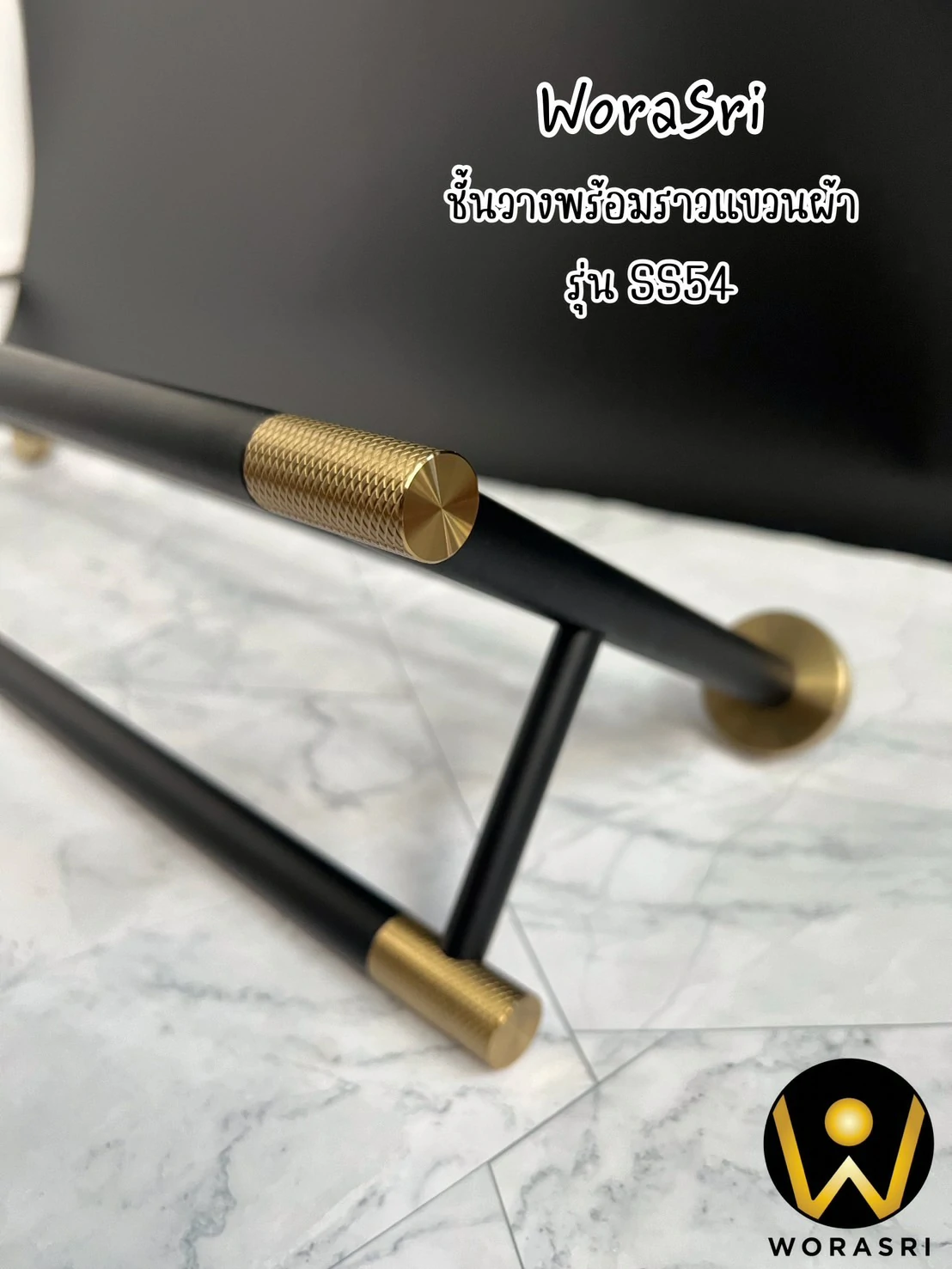ชั้นวางพร้อมราวแขวนติดผนังสีดำทอง ยาว 60 ซม. SS54 Towel Rack Shelves Black & Gold color