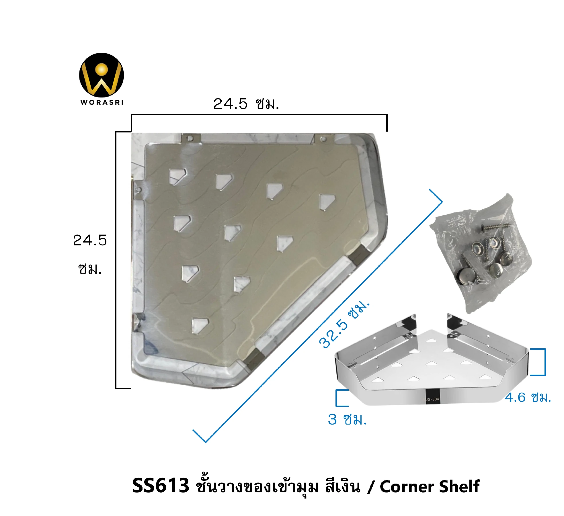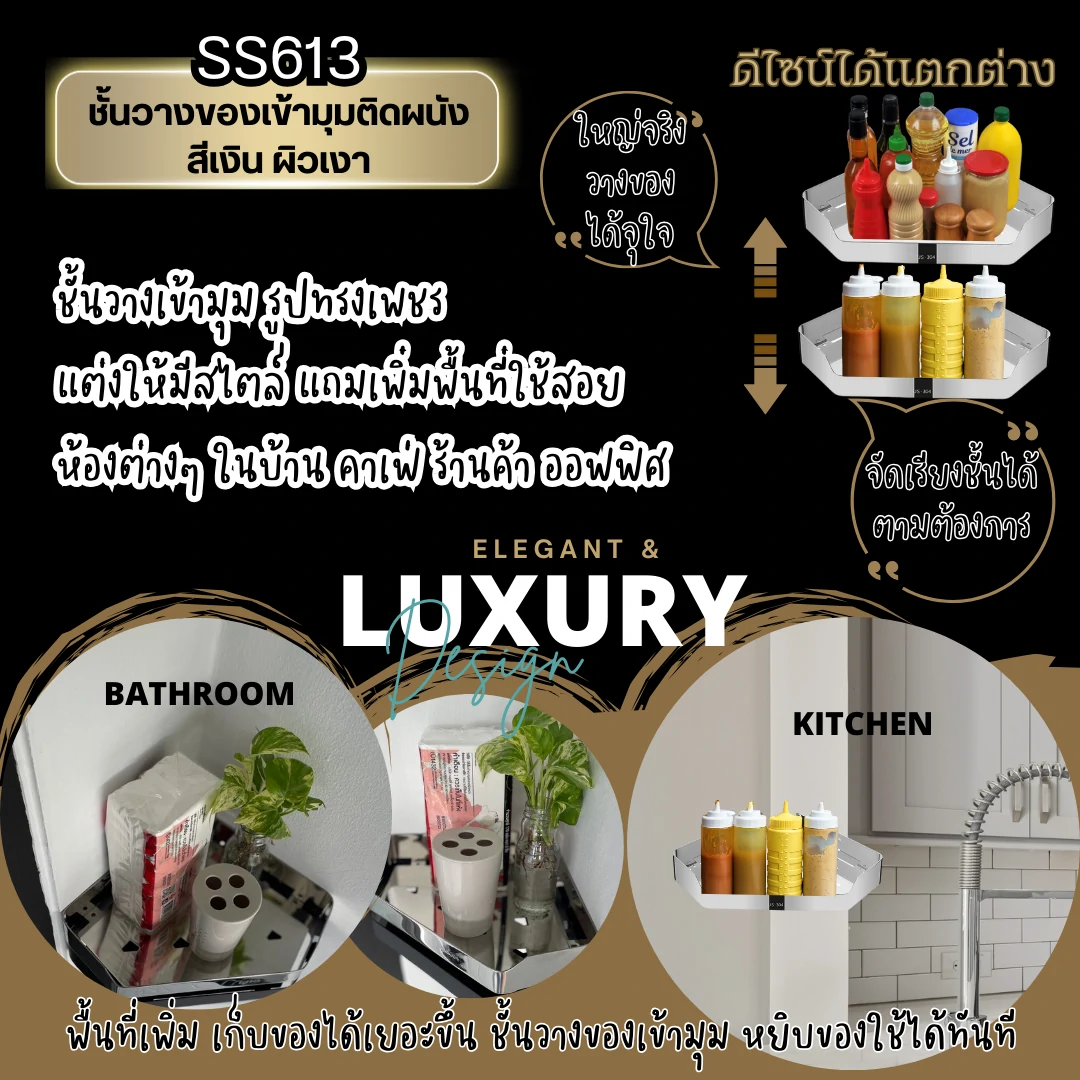 รายละเอียดสินค้า ชั้นวางเข้ามุมห้องน้ำติดผนัง รุ่น SS611, 612, 613