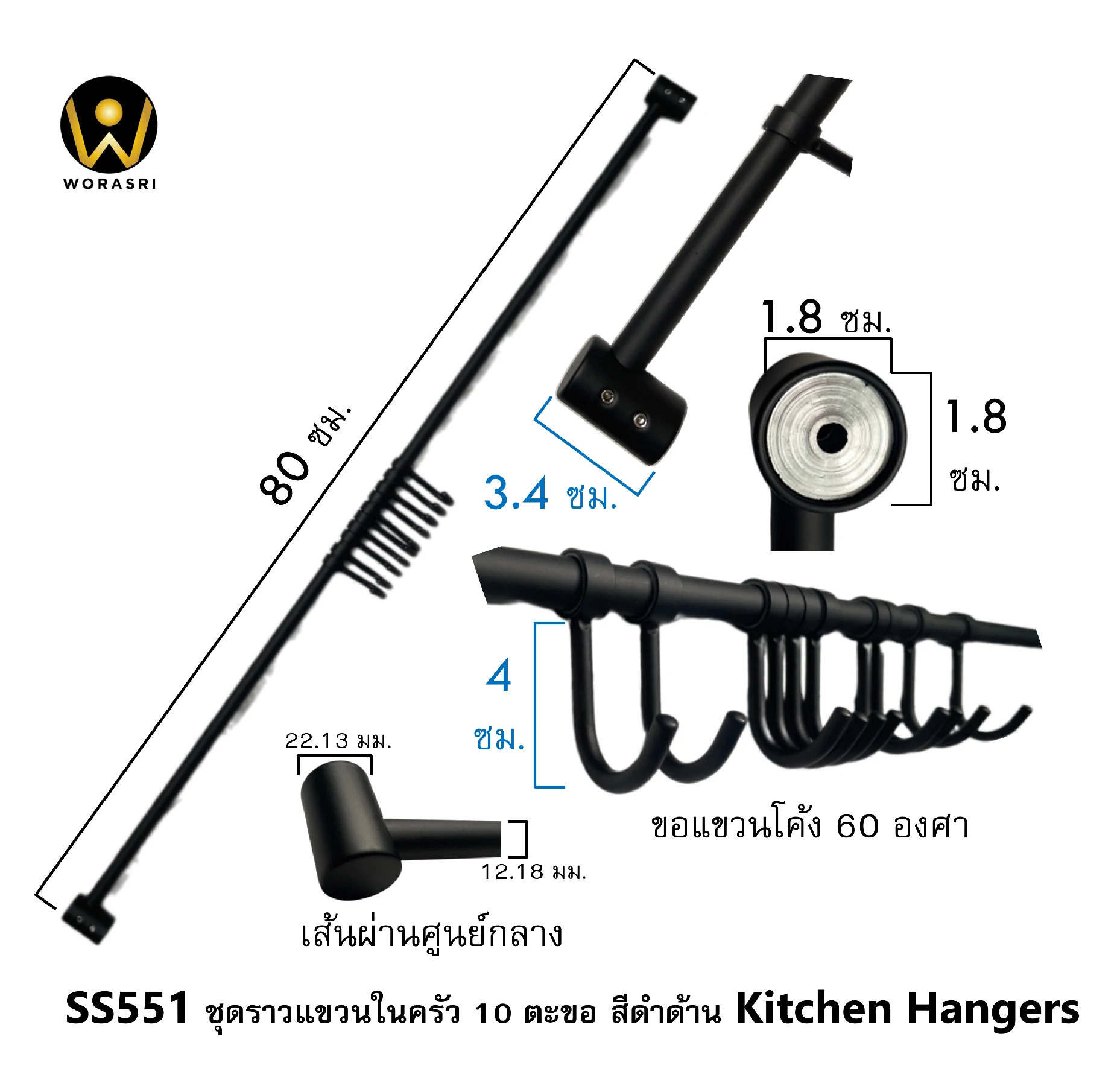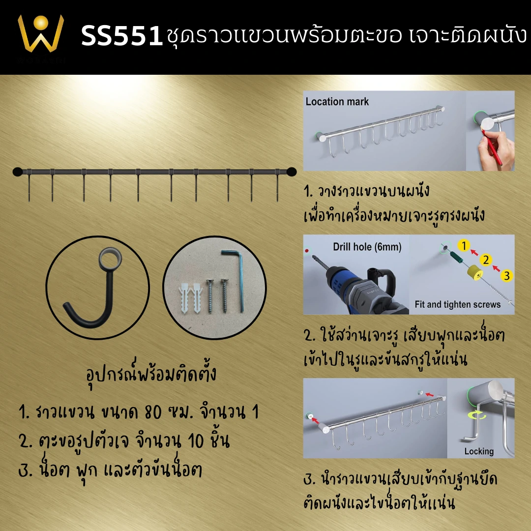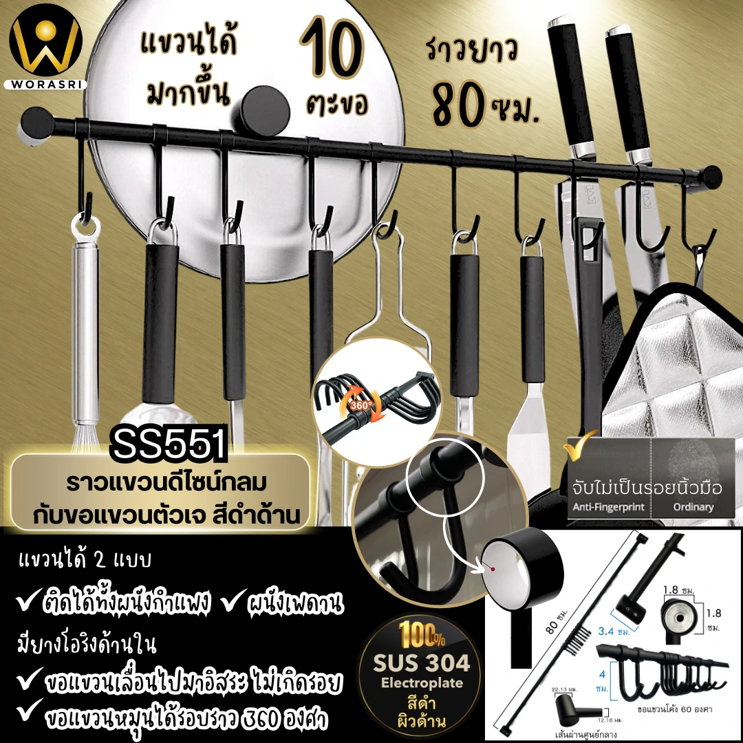 รายละเอียดสินค้า ชุดราวแขวนในครัว 10 ตะขอ รุ่น SS55 – SS551
