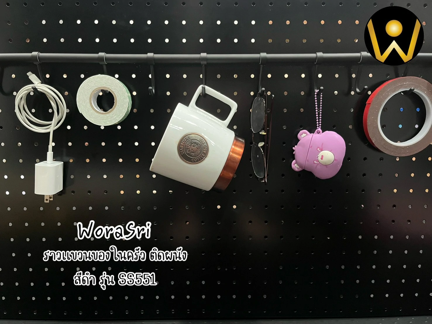 - ขอแขวน มีถึง 10 ตัว แขวนได้จุใจไม่ว่าจะเป็นอุปกรณ์ครัว ทัพพี ตะหลิว ถ้วยตวง ที่บีบกระเทียม ที่ขูดชีส ที่เปิดกระป๋องและที่เปิดไวน์ ใช้ในห้องนอนหรือห้องนั่งเล่น แขวนแว่นตา กระเป่า สายชาร์ต ผ้าพันคอ หรือออฟฟิศใช้แขวนแก้วโซนนั่งพักจิบกาแฟ ร้านอาหารคาเฟ่ ก็ใช้โชว์ของใช้ได้สวยๆ