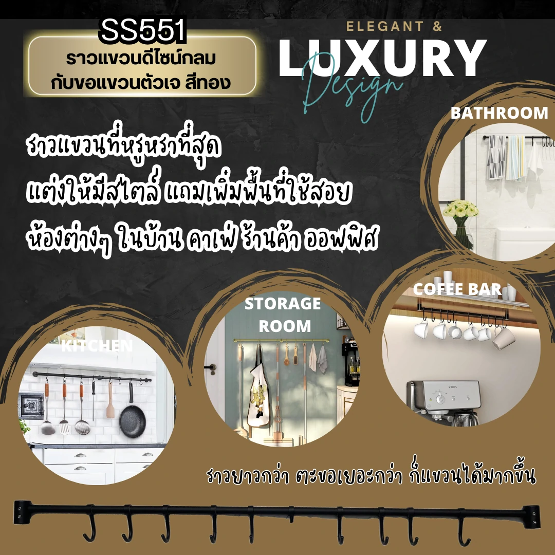 1. Size: ขนาดสินค้าราวแขวนในครัวสีทองด้านและดำด้าน