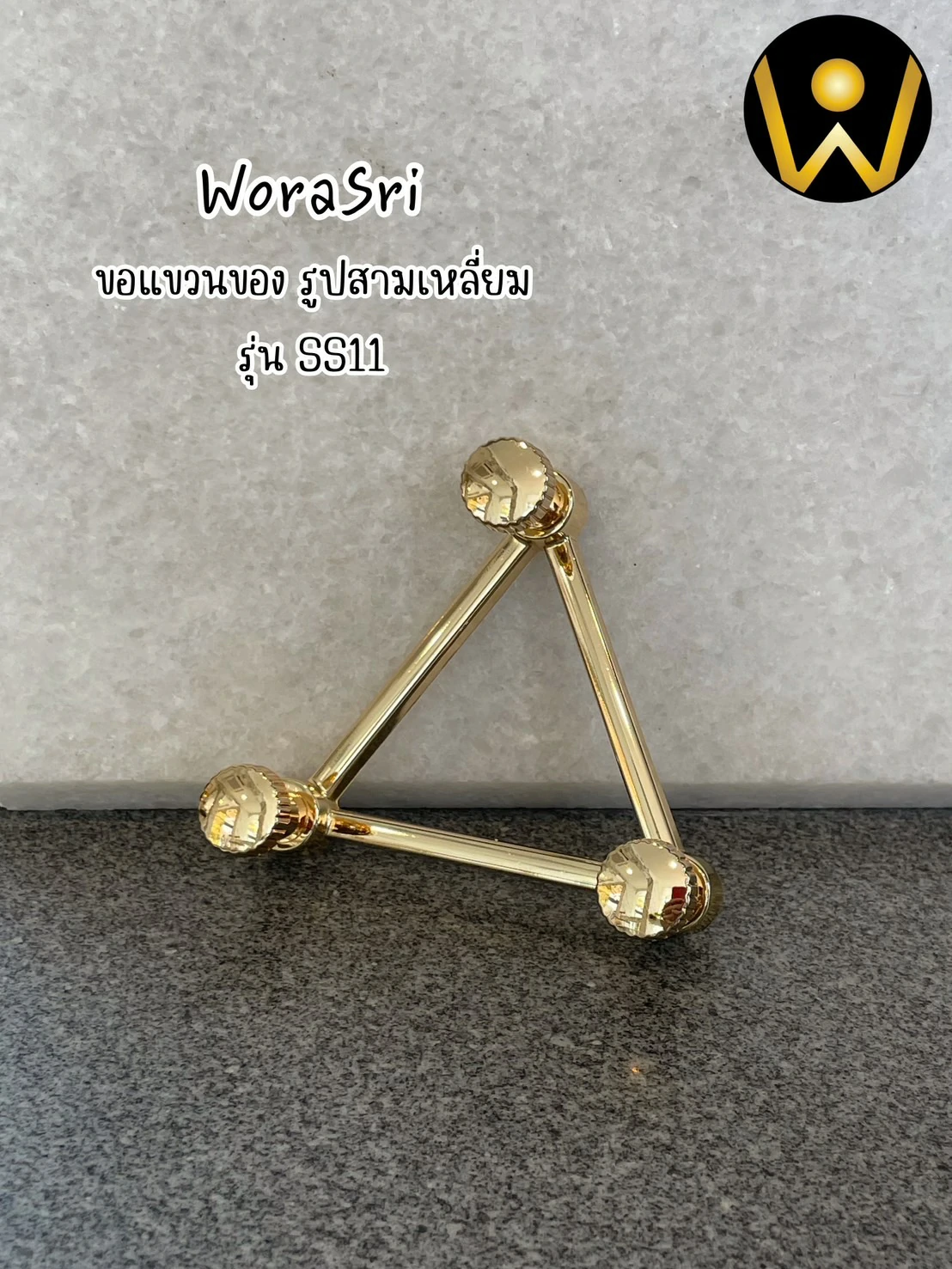 ตะขอฮุคราวแขวนผ้าติดผนังรูปสามเหลี่ยม สีทองเงา SS11 Triangle Shape Wall Hook