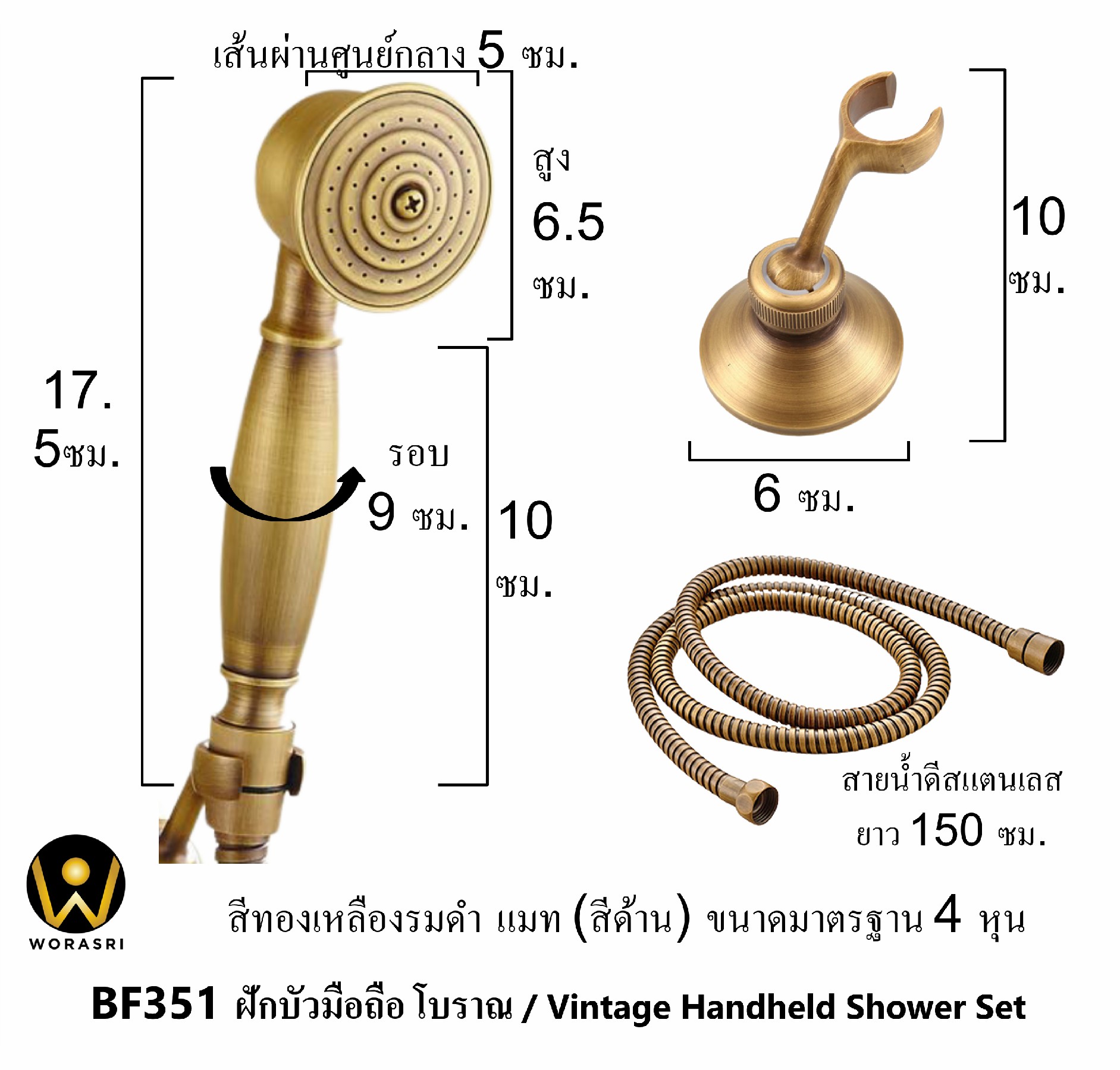 ฝักบัวมือถือแอนทีค คุณสมบัติเด่น ชุดฝักบัว รุ่น BF351 ดียังไง