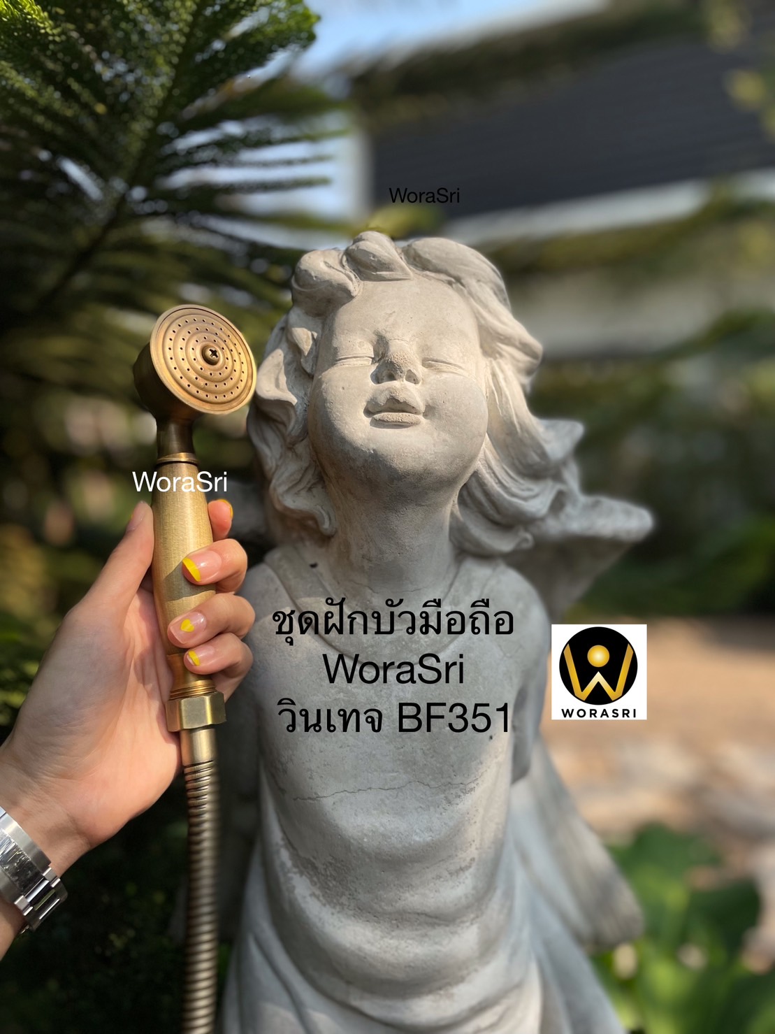- ฝักบัวและขอแขวนทำจากทองเหลืองแท้ หัวฉีดน้ำแรงดันสูง ไม่รั่วซึม ปลอดภัยจากสารตกค้าง ไม่เกิดสนิมแน่นอน ใช้ในห้องน้ำภายในหรือกลางแจ้งในสวนก็ได้