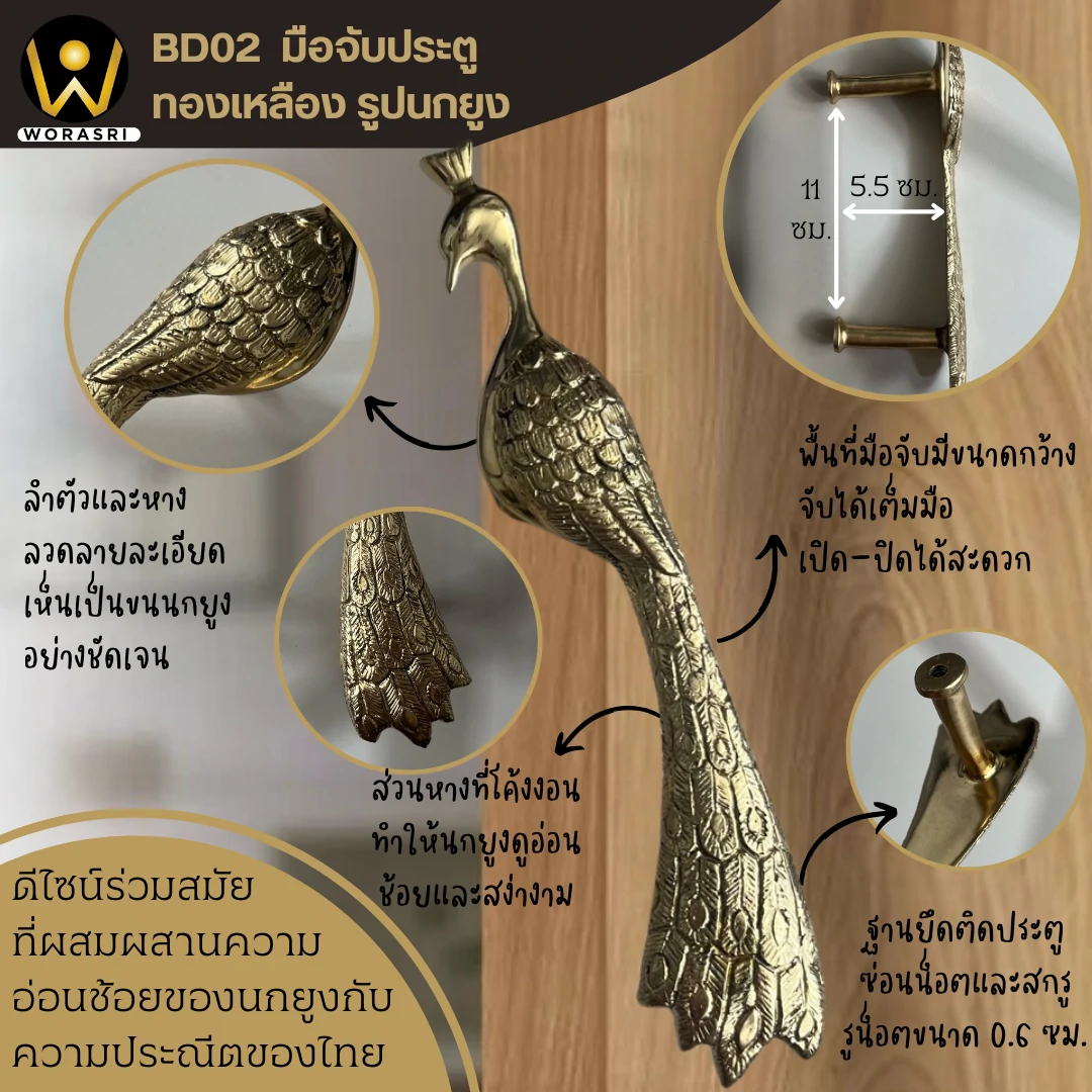 คุณสมบัติเด่น มือจับประตูนกยูง ทองเหลือง รุ่น BD02 ดียังไง