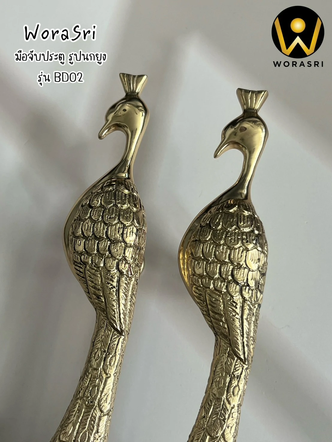 รายละเอียดสินค้า มือจับประตูนกยูง ทองเหลือง รุ่น BD02