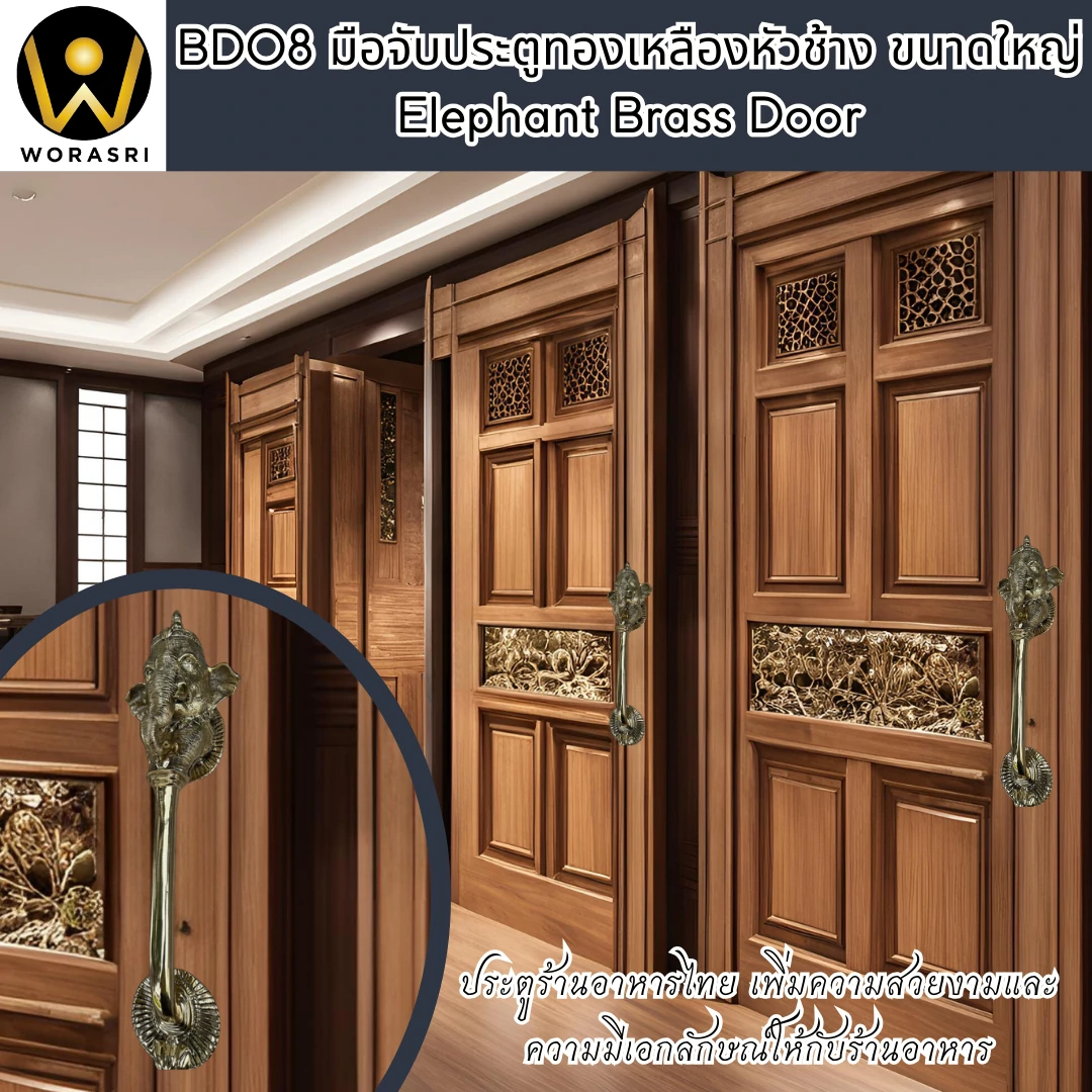 ไม่ว่าจะสถานที่ไหนทุกที่ทุกเวลาในการเดินเข้า-ออกประตู ก็ต่างต้องใช้มือจับประตูกันทั้งนั้น ยิ่งสถานที่ขนาดใหญ่ ประตูบานใหญ่ ก็ยิ่งต้องใช้ที่จับประตูชิ้นใหญ่ขึ้นไปด้วย มือจับประตูดีไซน์เเบบไทยสไตล์ รูปช้างที่แค่มองแล้วก็รู้สึกทึ่งในความยิ่งใหญ่และความมีพลัง บวกกับการดีไซน์ที่มีความสง่างามและความภูมิฐาน เพียงแค่จับและเปิดออกก็เหมือนได้รับพลังแห่งความโชคดี พลังแห่งปัญญา และความอุดมสมบูรณ์เข้ามาอยู่ภายในที่อยู่อาศัย ด้วยการออกแบบที่ไม่ธรรมดา มือจับประตูรูปหัวช้างก็สามารถทำให้บ้านของคุณโดดเด่นและเป็นที่จดจำ นี่คือไอเท็มที่ไม่เพียงแต่จะทำให้บ้านของคุณดูสวยงาม แต่ยังสร้างความประทับใจแรกพบที่ดีสำหรับผู้มาเยือนได้อีกด้วย