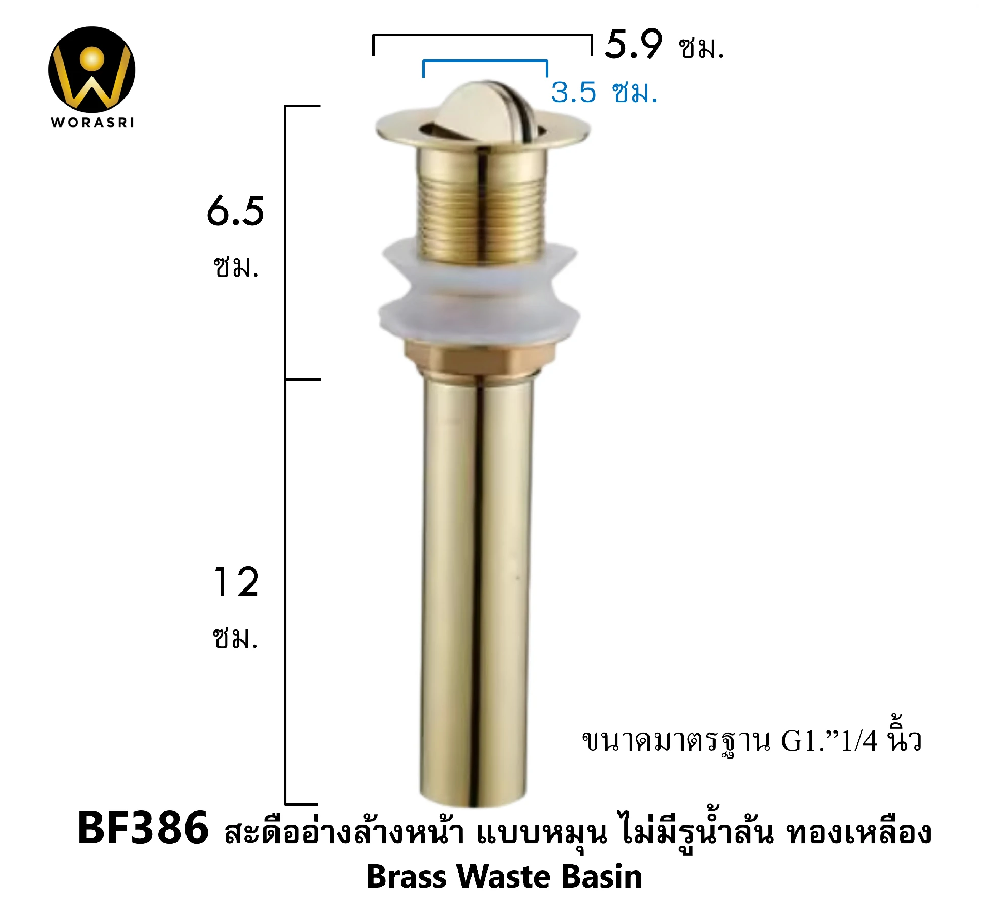 - สะดืออ่าง “แบบมีช่องรูน้ำล้นและไม่มีช่อง” ขนาดเกลียวมาตรฐาน G1 1/4 นิ้ว