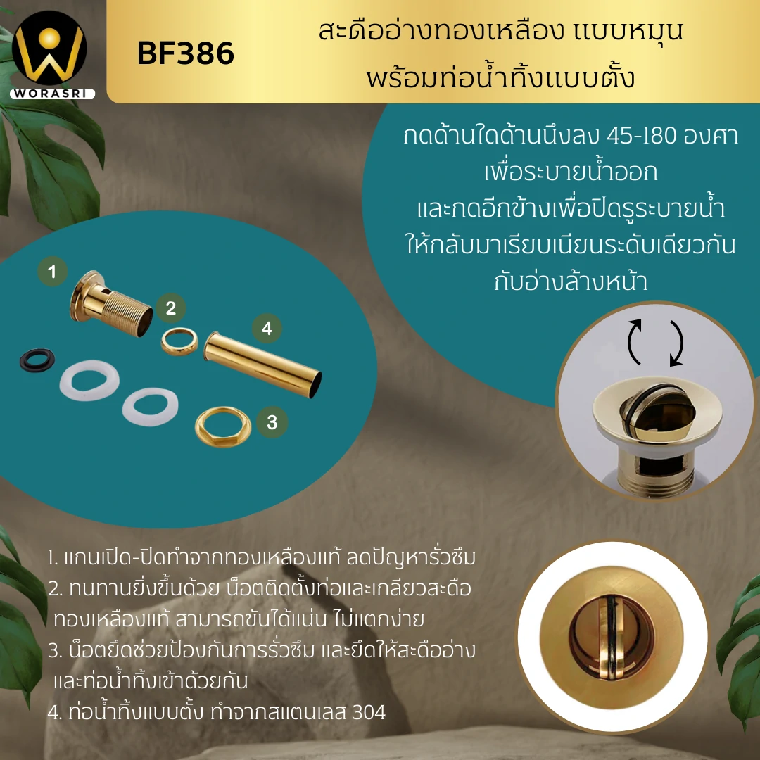 รายละเอียดสินค้า สะดืออ่างแบบหมุน รุ่น BF385 และ BF386
