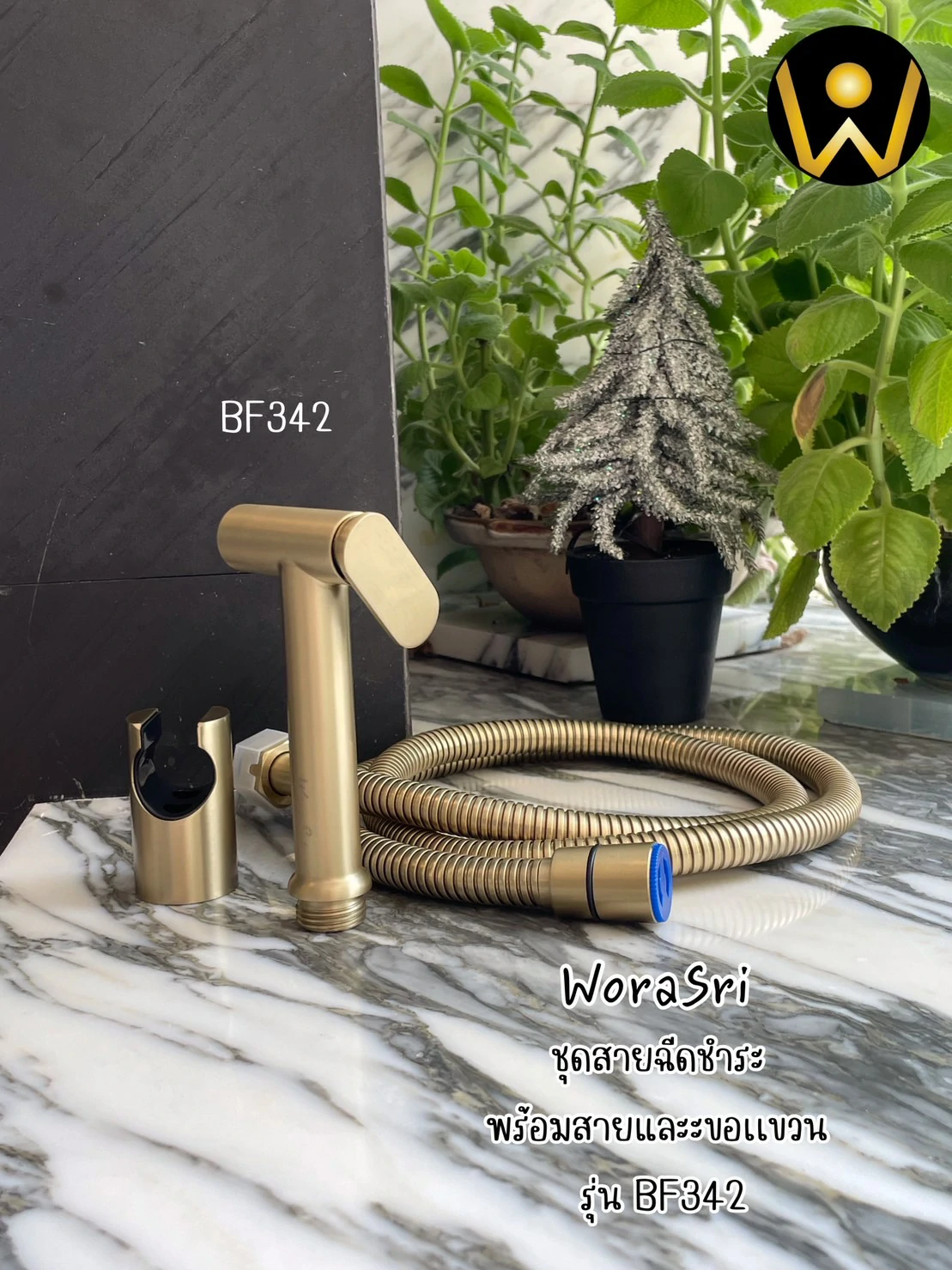ชุดสายฉีดชำระสแตนเลสสีทองด้าน BF342 Golden Bidet Stainless Set