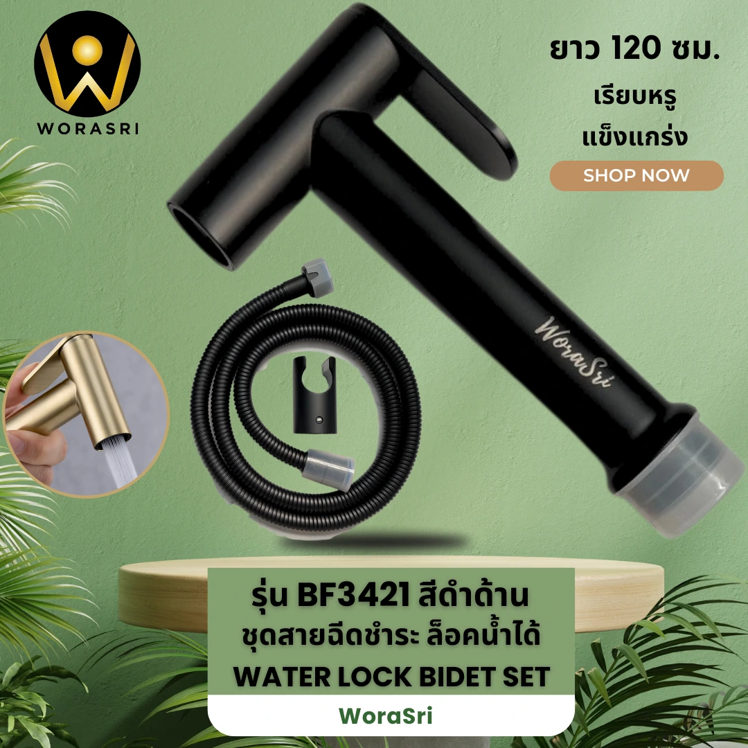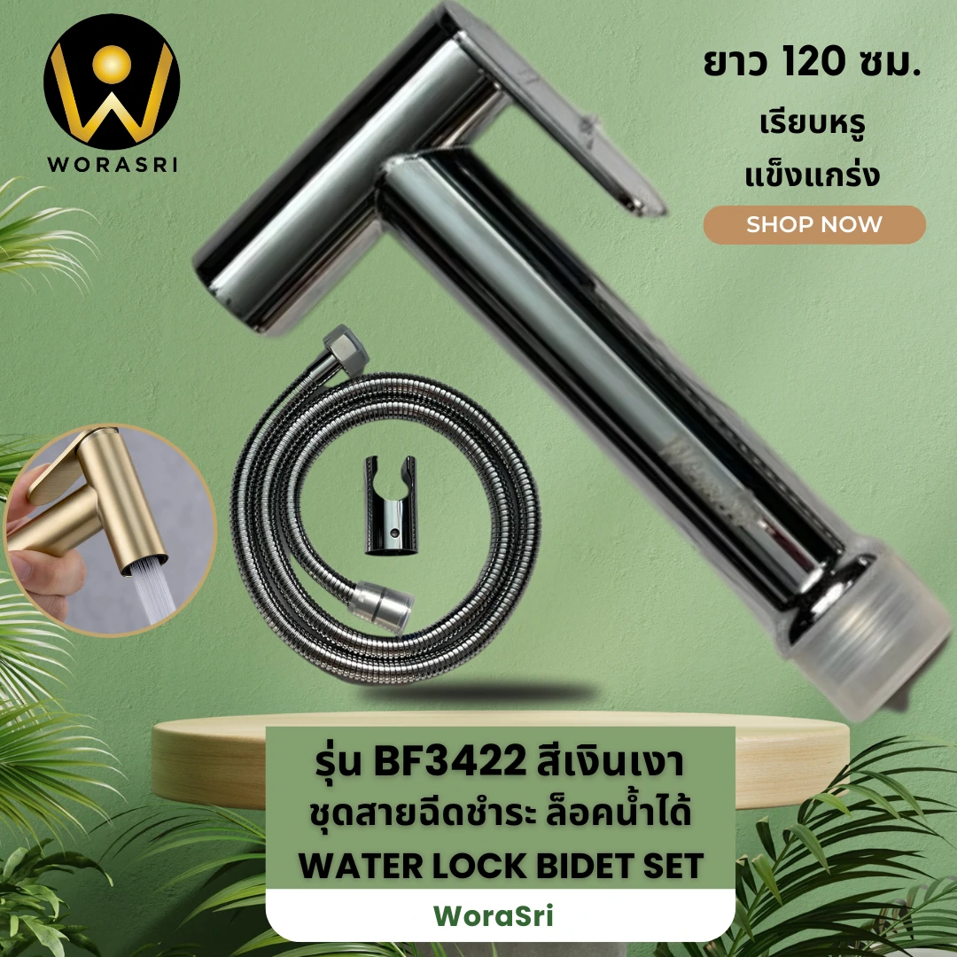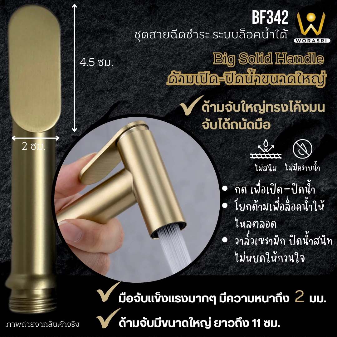 คุณสมบัติเด่น ชุดสายฉีดชำระสแตนเลสสีทองด้าน ระบบล็อคน้ำ รุ่น BF342 ดียังไง