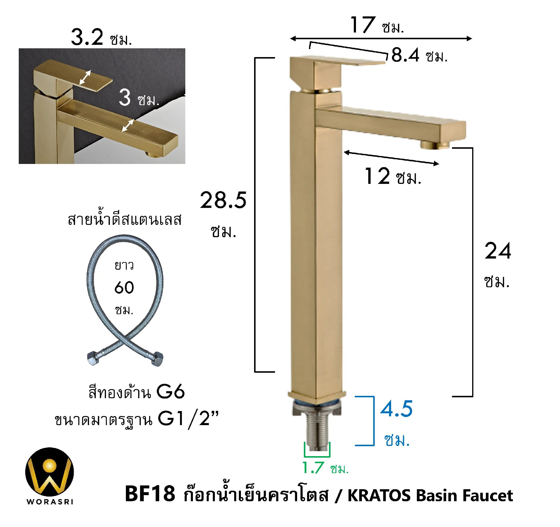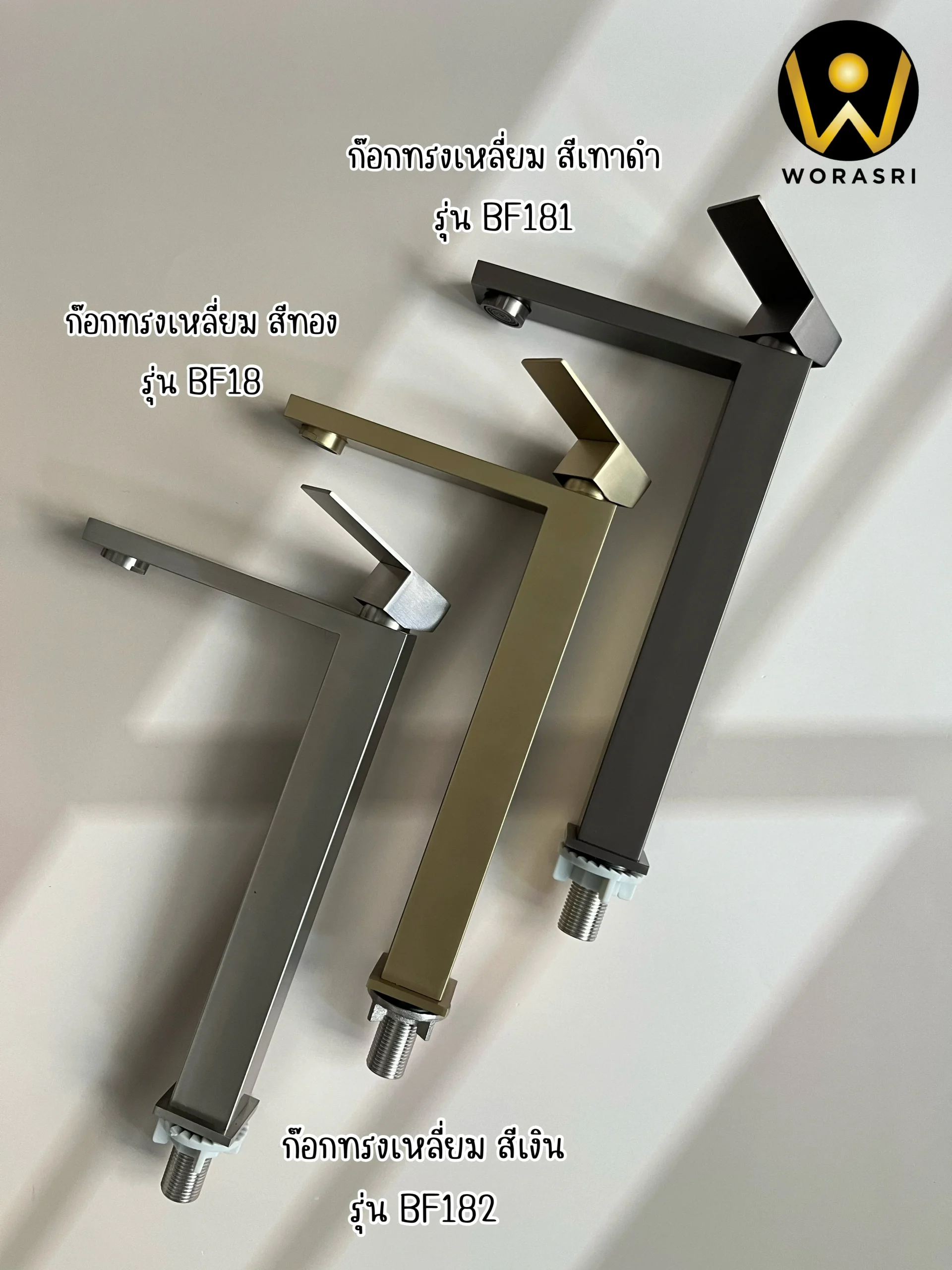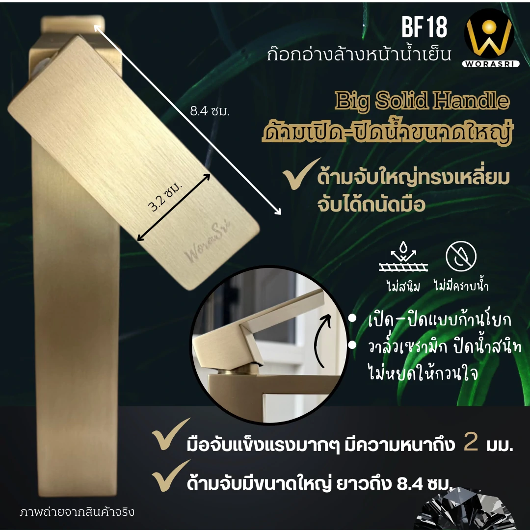 1. รุ่น BF18 สีทองด้าน Brushed Gold เคลือบผิวแบบ PVD (Physical Vapor Deposition)