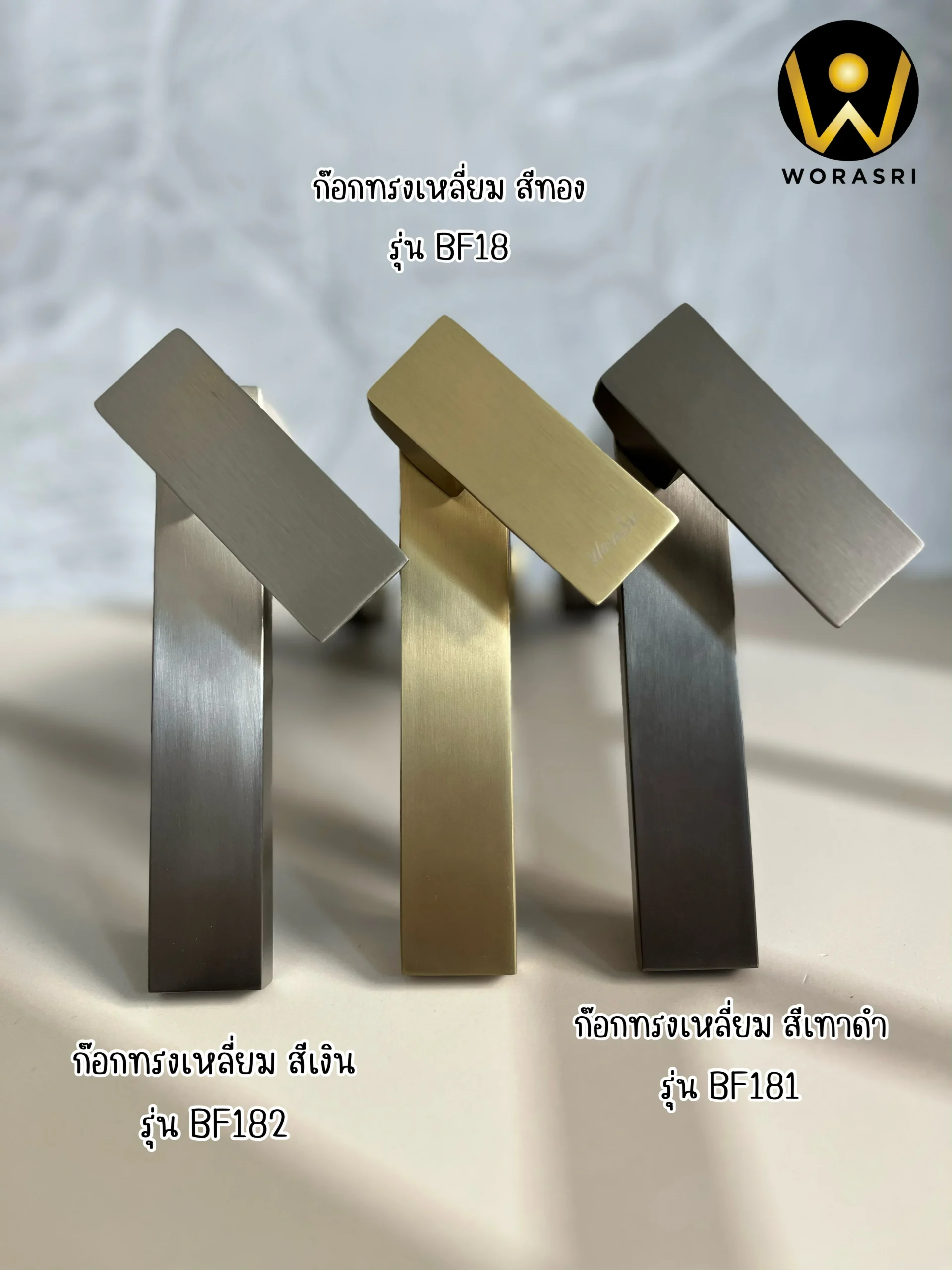 • รุ่น BF18 สีทองด้าน Brushed Gold Color ลักชูรี่สไตล์ (Luxury Style) ให้ความรู้สึกหรูหราดูแพง มั่งคั่ง เหมาะสำหรับการตกแต่งห้องที่ต้องการความโดดเด่นมีความพิเศษ แบบ Limited การแต่งบ้านด้วยลุคสีทองทำให้ดูลุคแพง เพิ่มความน่าสนใจและดึงดูดสายตาให้กับพื้นที่ในห้อง