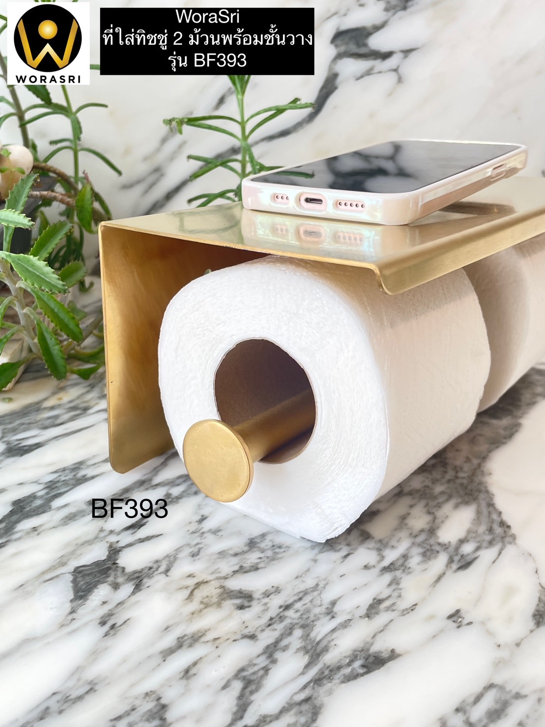 ที่ใส่กระดาษทิชชู่2ม้วน พร้อมที่วางมือถือในห้องน้ำ สีทองด้าน BF393 Golden Double Toilet Paper Holder