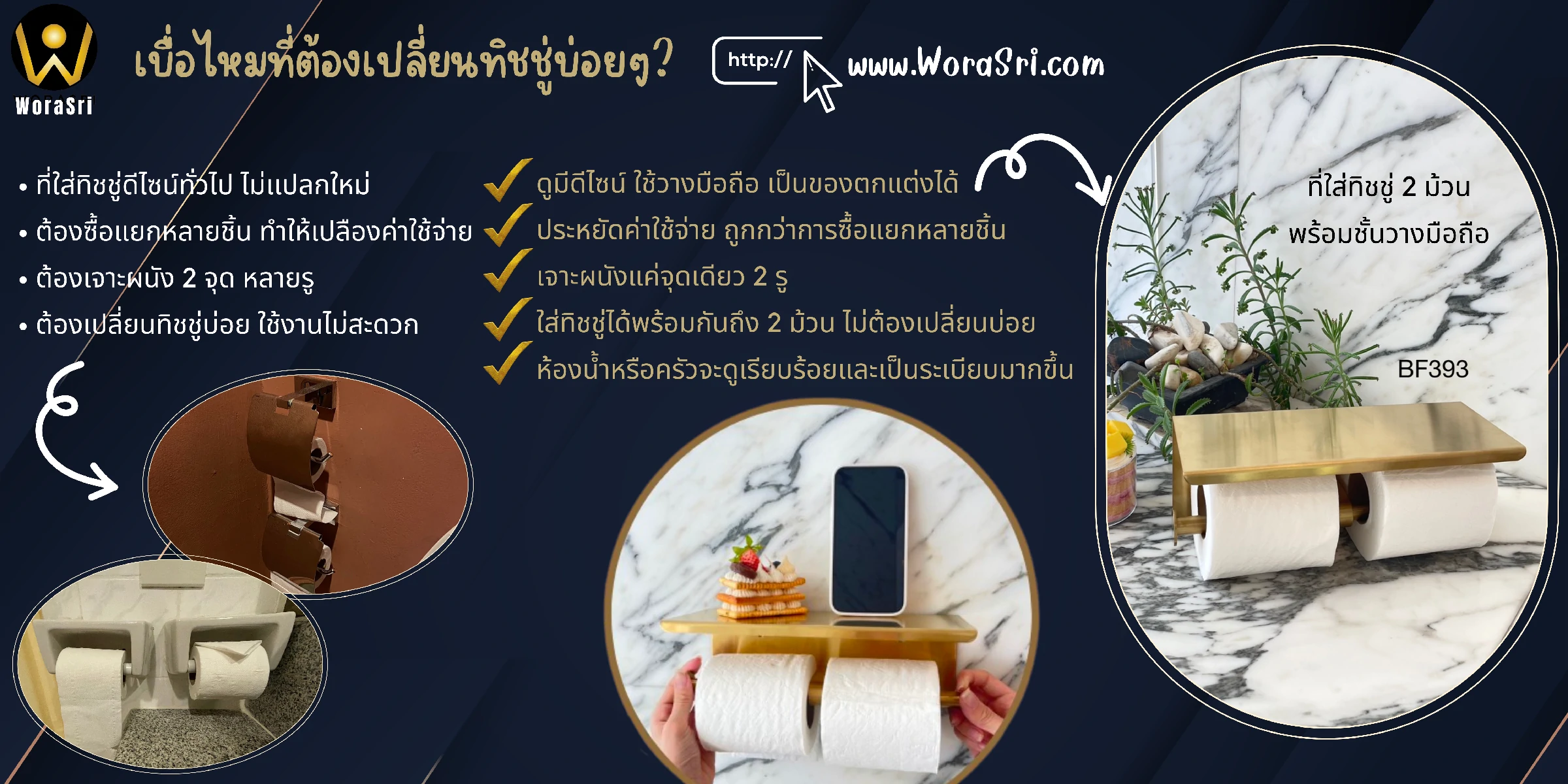 คุณสมบัติเด่น ที่ใส่กระดาษทิชชู่2ม้วน BF393 ดียังไง