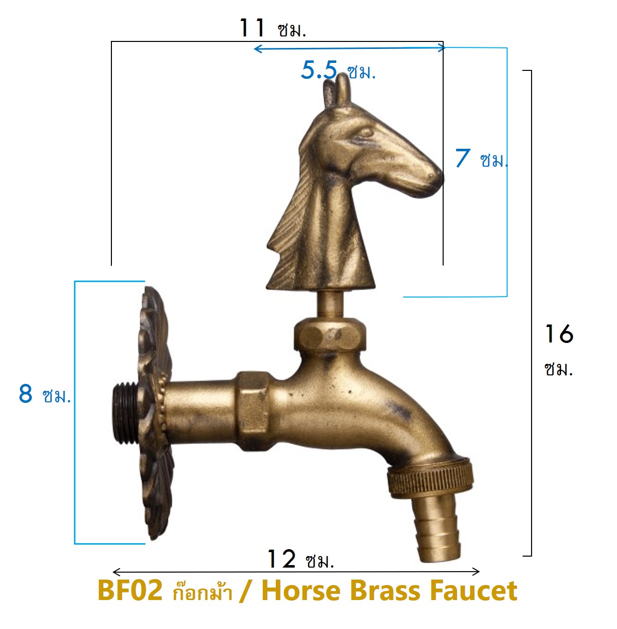 ก๊อกล้างพื้นนักษัตรม้าสีทอง BF02 Horse Brass Tap