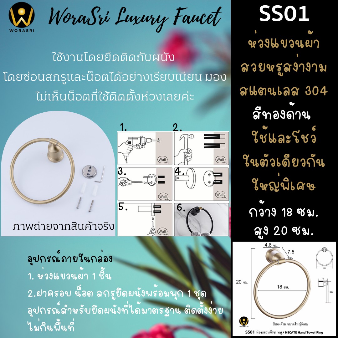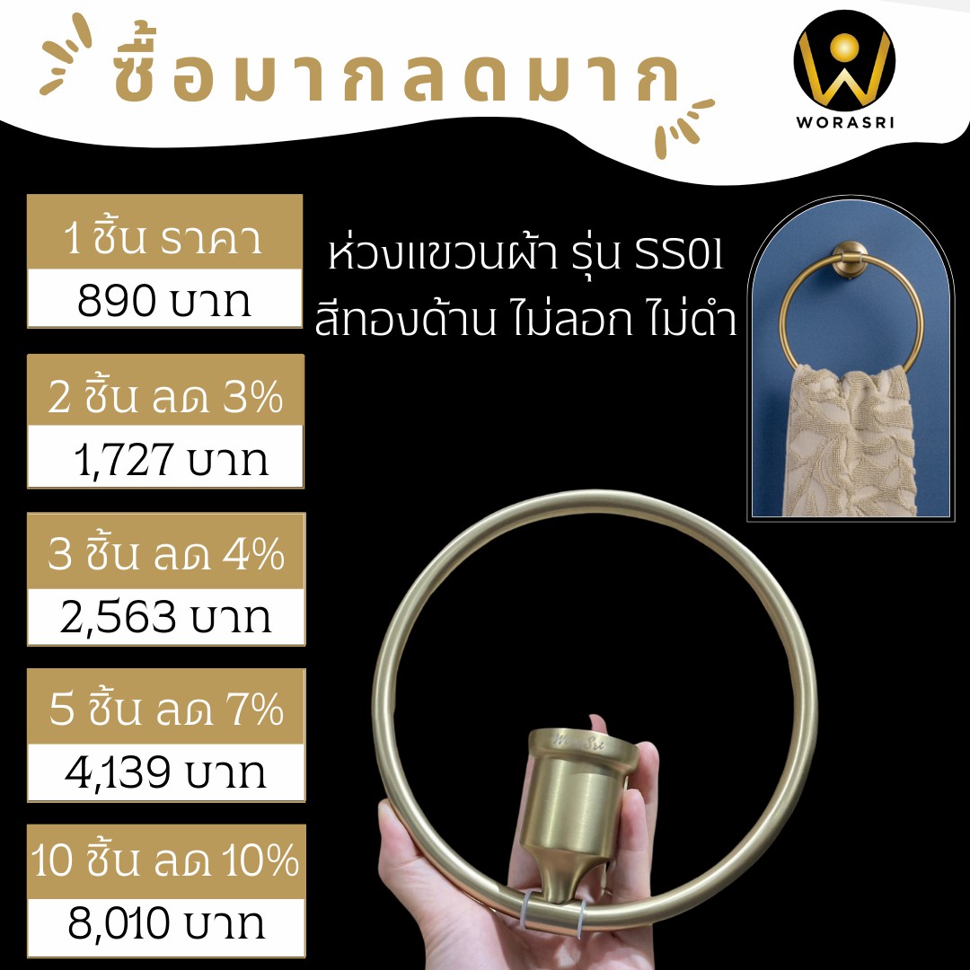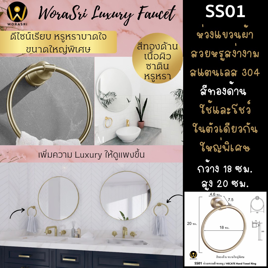 ห่วงแขวนผ้าขนหนูห้องน้ำ สแตนเลส 304 ทั้งชิ้น สวยตรงปกแน่นอน แต่งหรูห้องน้ำคาเฟ่ โรงแรมได้เลยค่ะ