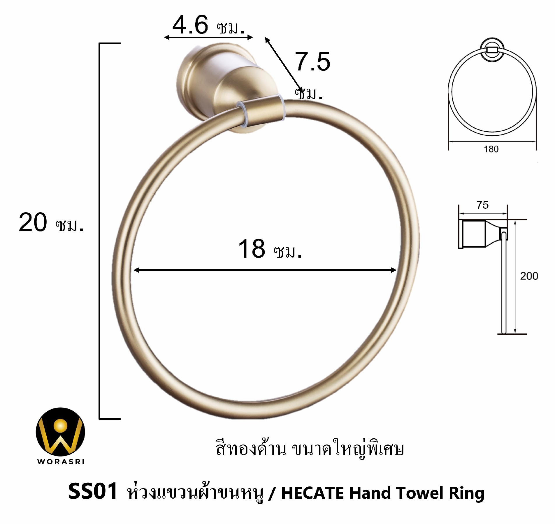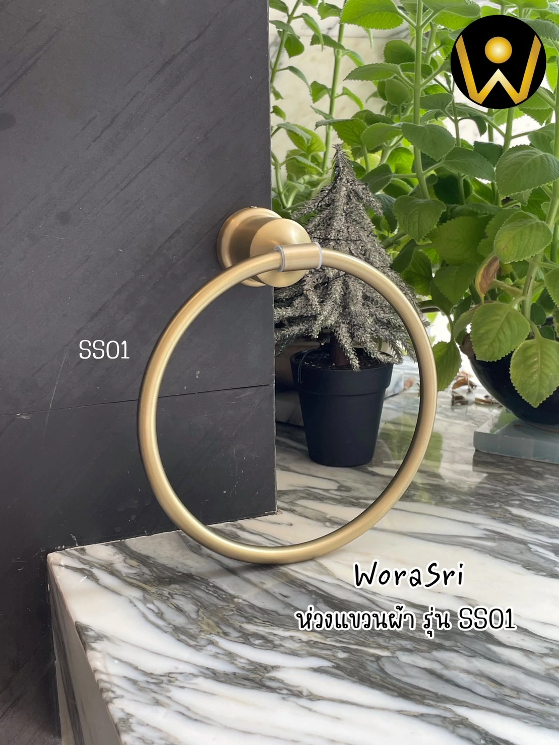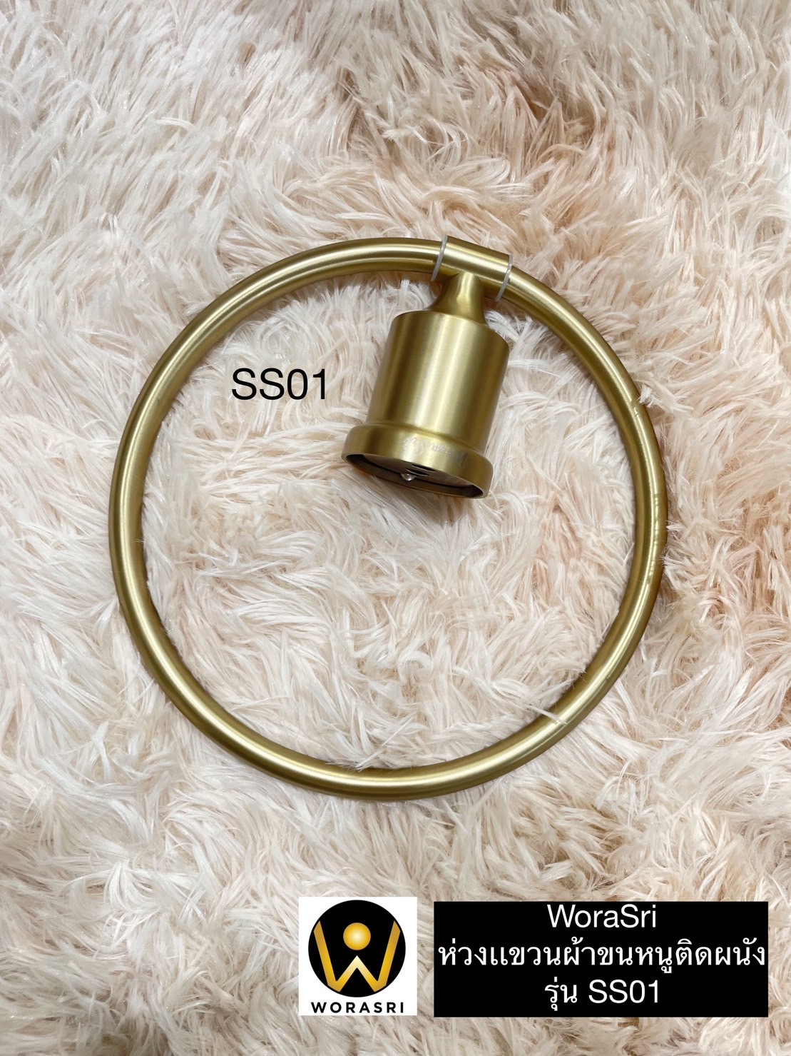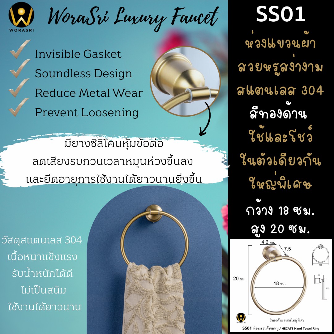 ห่วงแขวนผ้าขนหนูห้องน้ำ ห้องครัว เจาะผนัง สแตนเลส 304 สีทองด้าน SS01 Towel Ring